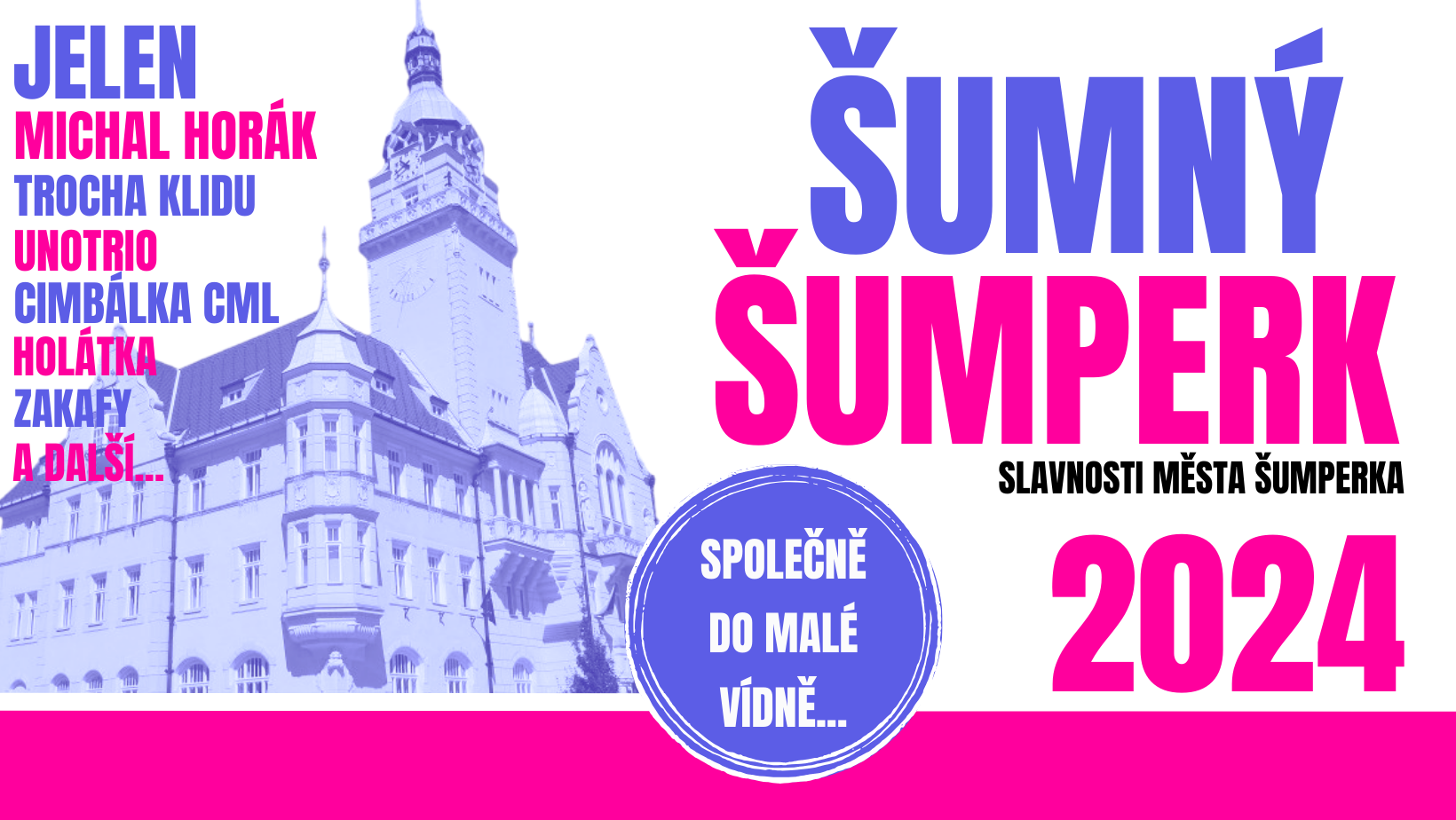 Podrobný třídenní program Šumného Šumperka se brzy zveřejní. Již nyní si však můžete zakoupit vstupenky na večerní koncerty v Pavlínině dvoře, kde se publiku představí například známý písničkář Michal Horák nebo populární skupina Jelen.