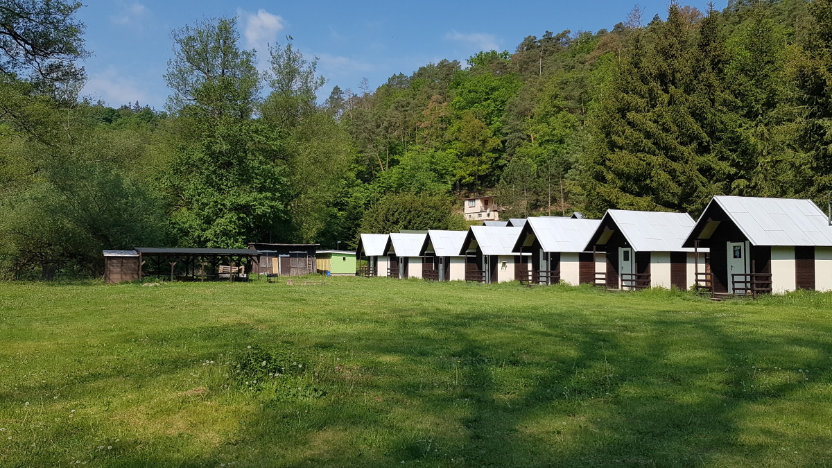 Areál se skládá ze čtyř lůžkových chatek se společným či vlastním sociálním zařízením a šesti lůžkové chatky s vlastním sociálním zařízením. Disponuje velkým ohništěm, kde můžete trávit romantické večery při opékání buřtíků. Čeká tu na vás krytá pergola s posezením pro trávení volnočasových aktivit. Celý areál je oplocený s elektricky ovládanou bránou pro vjezd osobních automobilů a uzamykatelnou brankou pro přístup k řece. Parkování automobilů či karavanů v areálu je možné na místech k tomu určených. Areálu dominuje hlavní budova, její součástí je sklad pomůcek a vybavení, sklady a sklepy pro uchování potravin, jídelna-společenská místnost a velká bohatě vybavená kuchyně. Na hranici tábořiště se nachází u řeky stylová výletní restaurace Saloon Šárka s vnitřním i venkovním krytým posezením. Máte tu prostě vše potřebné pro příjemně strávený čas a dovolenou.
