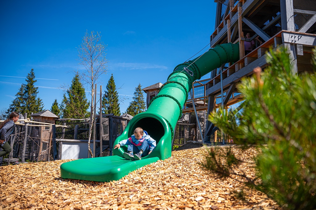 Co by to bylo za návštěvu Bachledky bez procházky po Stezce korunami stromů? Na toto místo se těší všichni návštěvníci. Procházka ve výšce až 24 metrů nad zemí, zakončená 32 metrů vysokou vyhlídkovou věží s adrenalinovou vycházkovou sítí a 67 metrů dlouhou suchou skluzavkou, je skvělou atrakcí pro malé i velké.