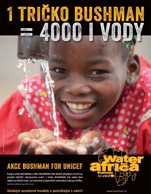 BUSHMAN podporuje projekt UNICEF „Nezávadná voda“ prostřednictvím speciální edice triček BUSHMAN FOR UNICEF.