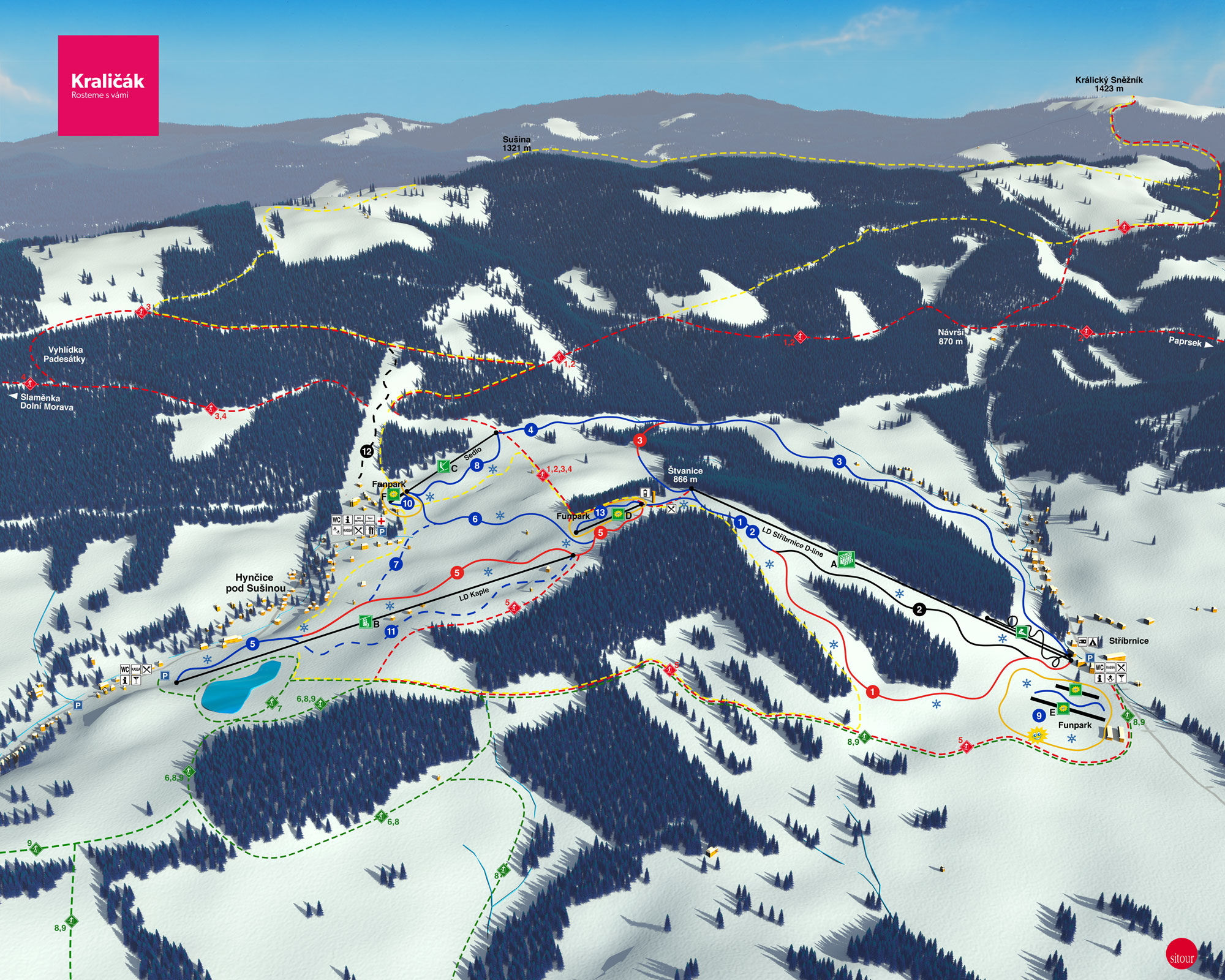 V malebných údolích okolo vrchu Štvanice, mezi obcemi Hynčice pod Sušinou, Stříbrnice a Štěpánov, se rozkládá horský areál Králický Sněžník – Kraličák. Autem se k lanovce dostanete za pouhé dvě hodiny z Brna, Zlína či Ostravy a z Olomouce za necelých 80 minut. Tento rozlehlý resort nabízí více než 10 kilometrů sjezdovek a 70 kilometrů běžeckých tras zasazených do nádherné přírody severovýchodního úpatí Králického Sněžníku. Díky své strategické poloze a vysoké nadmořské výšce je Kraličák ideální jak pro zimní dovolenou, tak pro jednodenní lyžařské výlety.