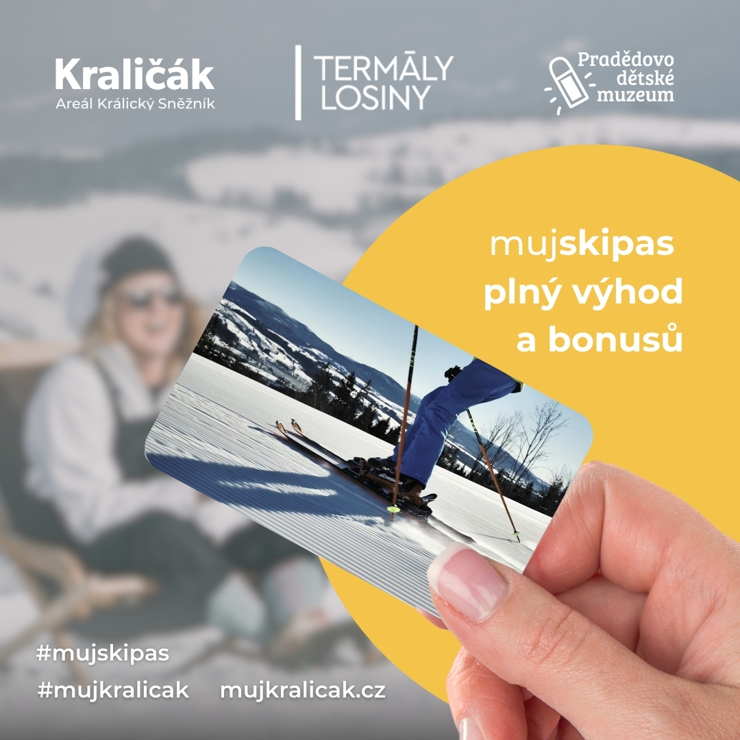 Při zakoupení 4hodinového, denního či vícedenního skipasu v areálu Kraličáku (tzv. „Můj skipas“) získáváte možnost vstupu zdarma do saunového světa Terme Velké Losiny nebo vstupenku do Pradědova dětského muzea v Bludově.