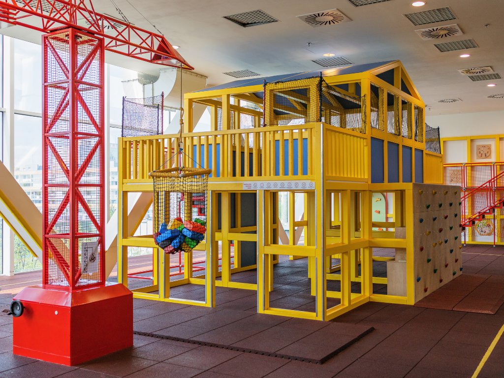 Pro ty nejmenší je zde připravena tzv. „baby zóna“ – měkký a bezpečný prostor s hračkami, který umožňuje zkoumat okolí v bezpečném prostředí, rozvíjet jejich smyslové vnímání a jemnou motoriku. Máte doma malého stavitele, milovníka bagrů, jeřábů a další těžké techniky? Unikátní atrakce staveniště s jeřábem je novinkou, kterou nikde jinde nenajdete. Obří čtyřmetrový jeřáb mohou větší děti samy obsluhovat a postavit si vlastní stavbu snů. Na staveništi nechybí ani nákladní vozíky na stavební materiál, vrátnice se závorou, lešení a stavebnicové stěny.