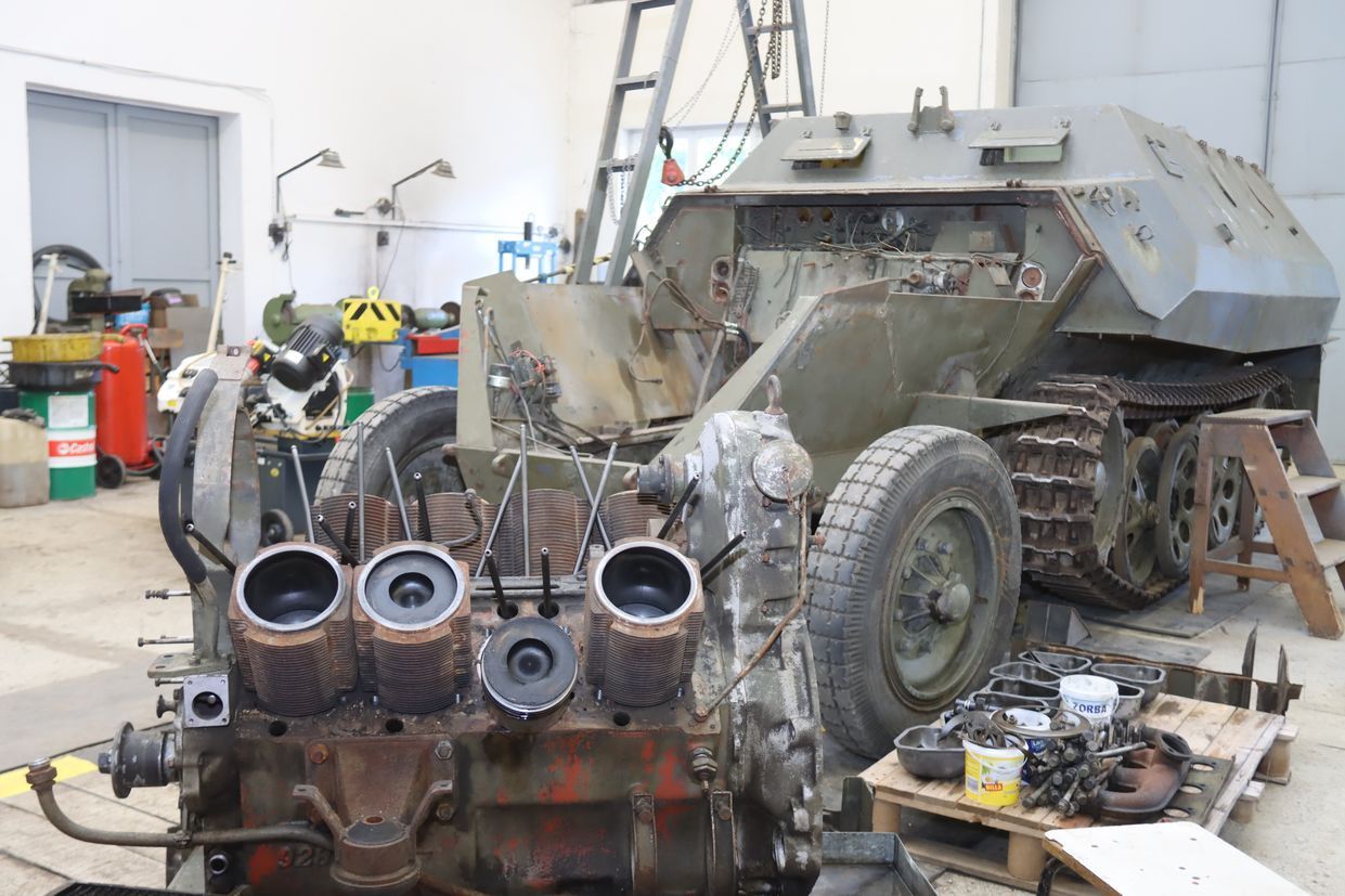 Automobilka Tatra samozřejmě není známá jen dakarskými speciály. Naopak.  Ty jsou jen pověstnou třešinkou na dortu. Kromě osobních vozů, z nichž některé jsou ve sbírce VHÚ Praha jsou známé především nákladní automobily. Právě na jejich základě stavěli konstruktéři závodní dakarské speciály. Při zahájení 30. návštěvnické sezony bude představen vojenský vůz TATRA 138, který museli pracovníci Vojenského technického muzea Lešany zkontrolovat, aby jej návštěvníci mohli obdivovat v dynamické ukázce. V době naší návštěvy na něm pracovali kolegové v dílnách. TATRA vyráběla i motory, které se montovaly do jiných vozidel. Na snímcích z dílen Vojenského technického muzea v Lešanech vidíte motor TATRA 928, který pohání polopásový obrněný transportér OT 810 D, který se stal jedním ze symbolů 2. světové války.