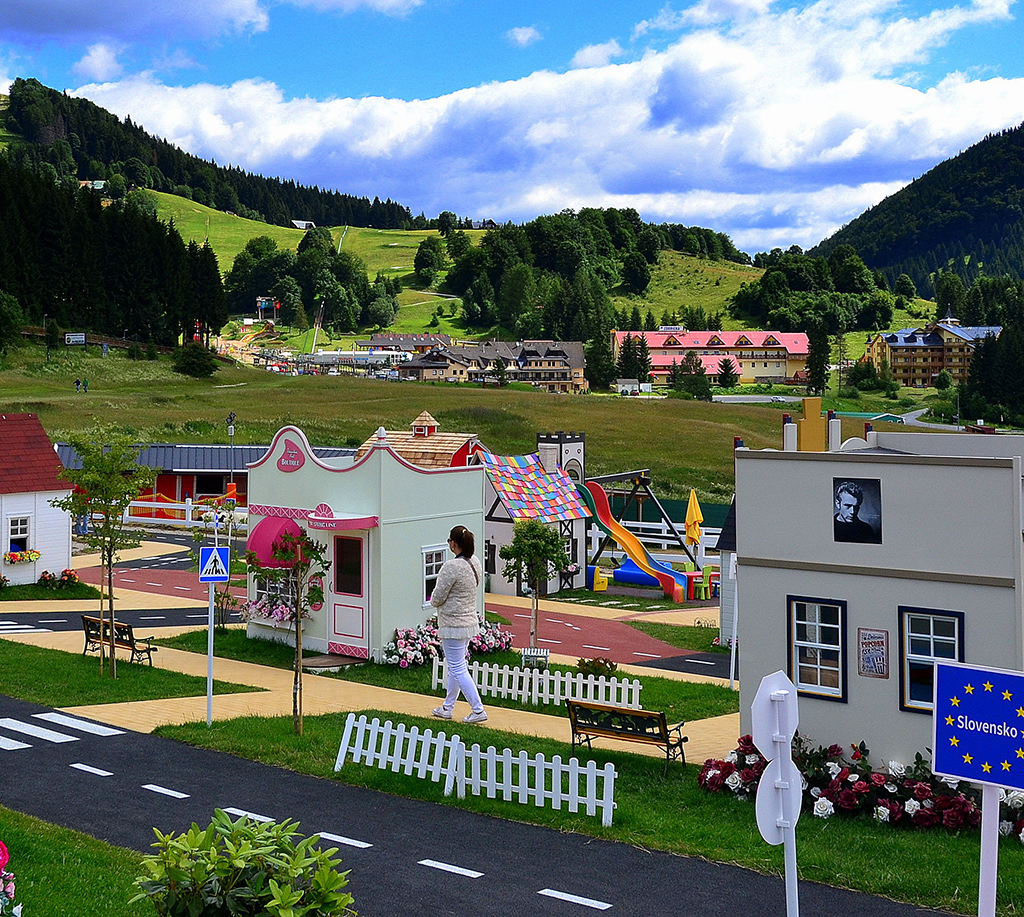 Vydejte se do městečka, kde na vás čeká 23 domů zmenšených tak, aby opravdu zapadly do dětského světa. Interaktivní areál pro rodiny na Donovalech přivítá všechny děti a nabízí prostor pro den plný zábavy a kreativity. Pro kreativce je otevřena galerie, kde můžete stříhat, lepit, malovat, zároveň vystavovat svá díla nebo si je odnést domů. Děti si zde ve vymezený čas mohou nechat pomalovat obličej