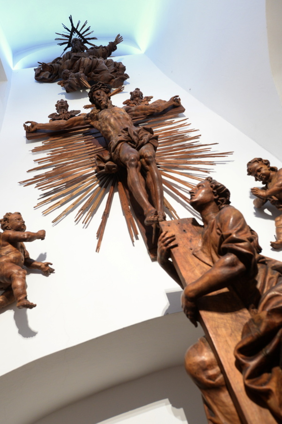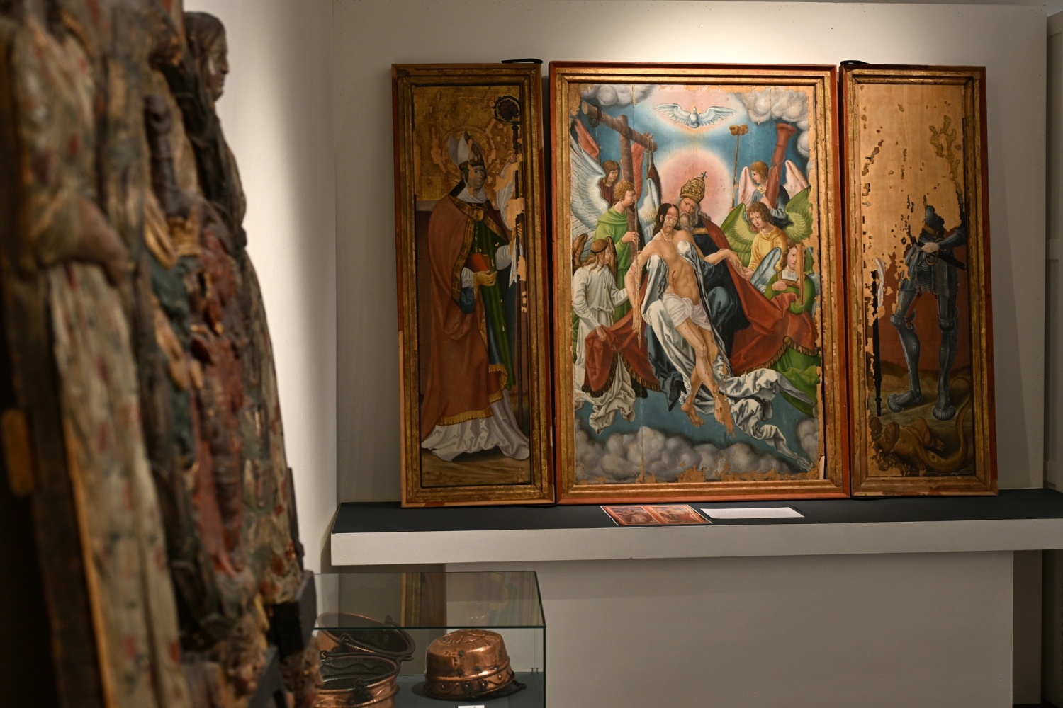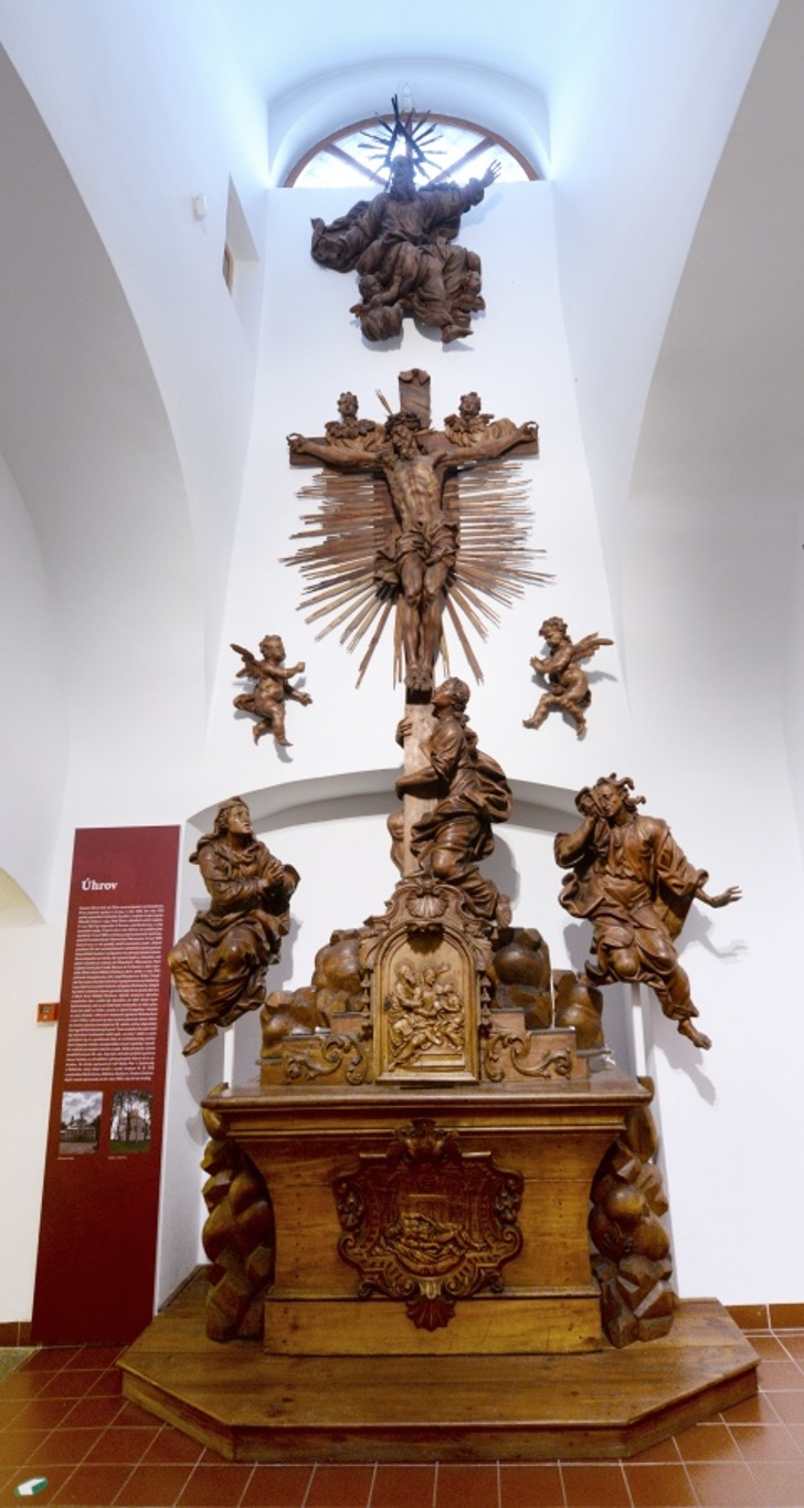 Vzácný Úhrovský oltář je součástí expozice v Chmelvodovském domě – barokní sousoší Kalvárie z roku 1735 od sochaře Ignáce Rohrbacha. Tento umělecký klenot pochází z kaple Povýšení svatého Kříže na zámku v Uhrově a jeho instalace podtrhuje propojení výtvarného umění s duchovní tradicí.