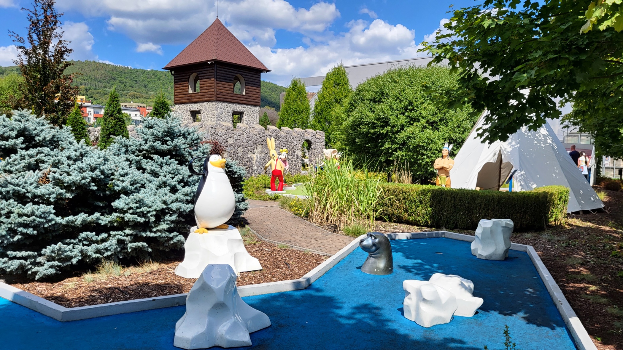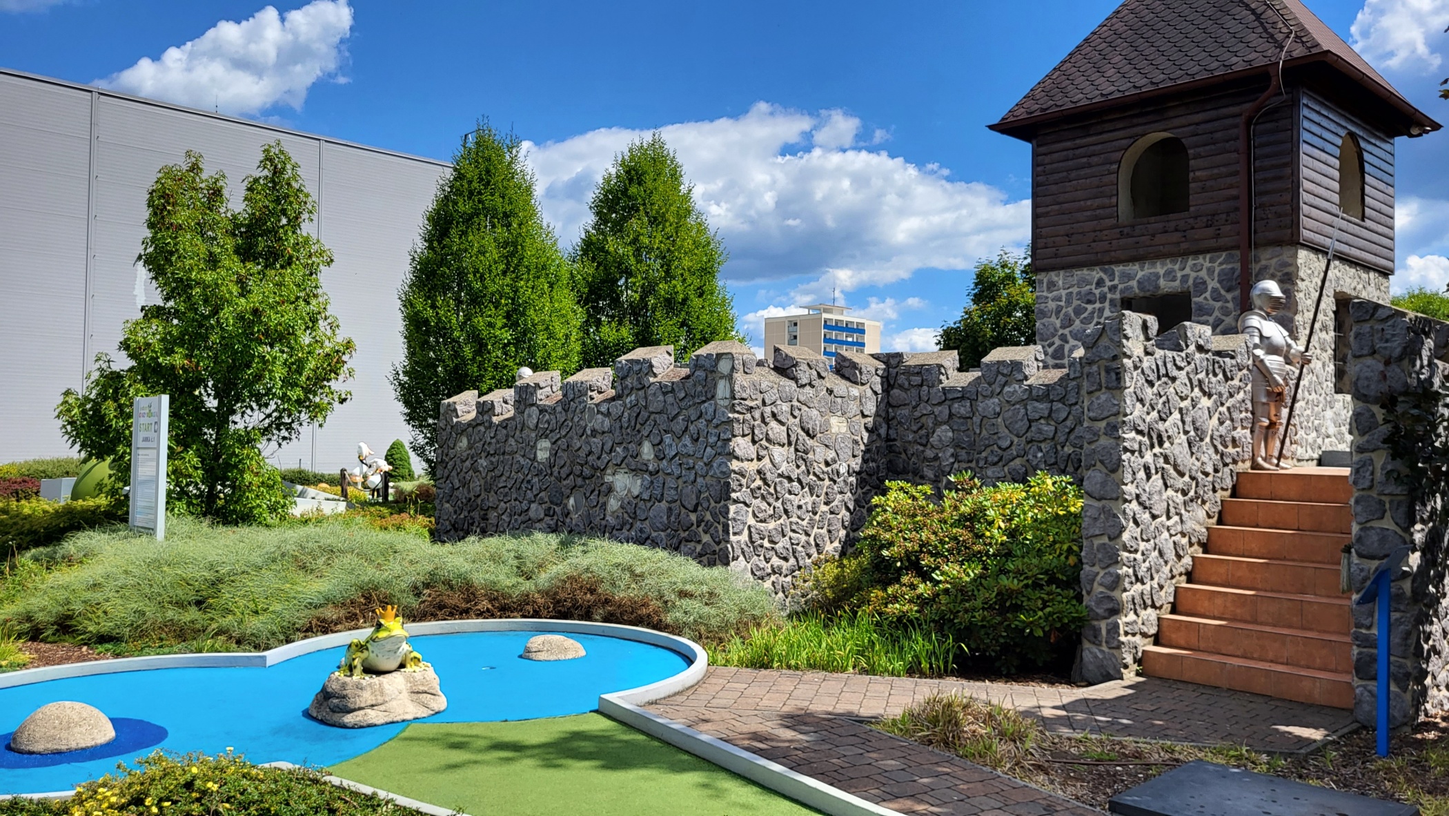 Samotná herní trasa má 18 jamek, při jejím procházení si užijete spoustu zábavy. Jelikož je člověk tvor přirozeně soutěživý, pokud se poddáte atmosféře prostředí, během chvilky se tu vrátíte zpátky do svého dětství, zaskotačíte si tu jako malí. Jednotlivé dílčí hry jsou pojmenovány následovně: safari, pohádková babička, větrný mlýn, cestičky, ledová jamka, kuželky, myška a sýr, zakletá princezna, hradní nádvoří, hradní schody, hradní mříž, čtyřlístek, indiánská, noty, barevné kaskády, lesní jamka, drak a golden gate. Každé hřiště má svůj specifický originální vzhled a také pravidlo, jak ho zdolat.