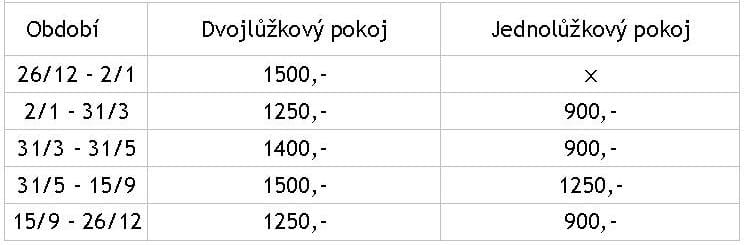 • 1 apartmán pro 4 osoby včetně vybavené kuchyně