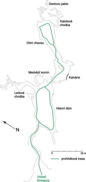 Celková délka všech známých chodeb dosahuje 950 metrů s výškovým rozpětím (denivelací) přes 60 m. Prohlídkový okruh je dlouhý 430 metrů. Hlavní dóm je s rozměry 96 x 25 x 15 metrů největší veřejnosti zpřístupněnou podzemní prostorou v České republice.