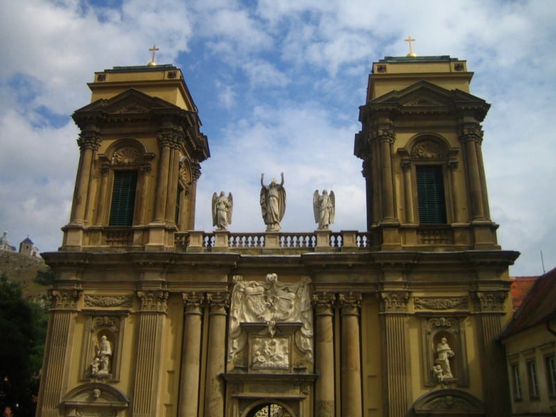 Přemysl Otakar I. dal na Zámeckém vrchu postavit mohutný kamenný hrad, aby střežil neklidnou hranici s Rakouskem. Od poloviny 13. století jej po tři staletí budovali Liechtensteinové. S Dietrichsteiny po r. 1575 přišla do Mikulova doba renesance a kardinál František Dietrichstein nechal hrad v letech 1611-18 přestavět na výstavný zámek, odpovídající potřebám bydlení časně barokního kavalíra, v němž nechybělo ani divadlo.