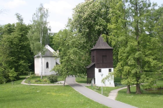 Dnešní podoba kostelíka je výsledkem novogotické přestavby. Podle pověsti zkropila krev při popravě havířů jednu z větví nedaleko rostoucího dubu a ta od té doby rodila žaludy připomínající tvarem bezhlavá těla v kápích. Dub zde rostl až do roku 1777 a několik jeho žaludů je dodnes uloženo v poděbradském muzeu. Za zmínku stojí i jedna z nejstarších zachovalých staveb v Poděbradech – starobylý přízemní domek, který sloužil jako špitál. Byl financován z nadace Kunhuty ze Šternberka, první ženy krále Jiřího z Poděbrad. Ještě v 17. století zde žily chudé stařeny s povinností denních modliteb za zdraví habsburského rodu.