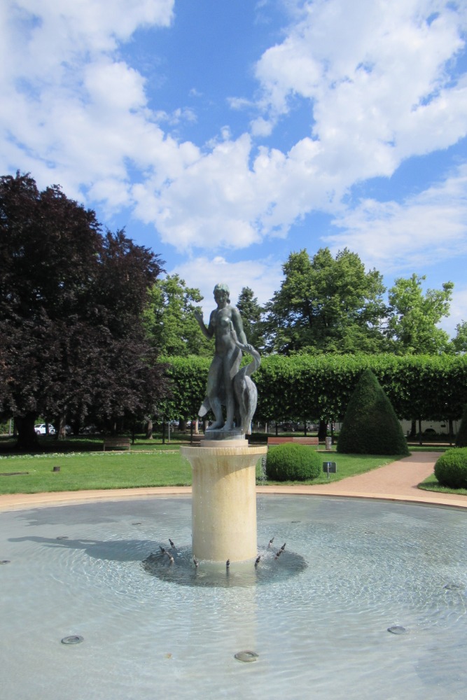 Každého určitě napadne: „Lázně“. Známý proutkař baron Karel Bülow z Bothkampu v roce 1905 označil na zámeckém nádvoří místo, kde byl pak 1. srpna nalezen v hloubce více než 96m vydatný pramen minerální vody. Kníže Hohenlohe staví o tři roky později první „Knížecí lázně“ a od roku 1920 jsou Poděbrady ryze českými, moderními a také velice módními lázněmi, kam se sjíždí prvorepubliková společenská smetánka.