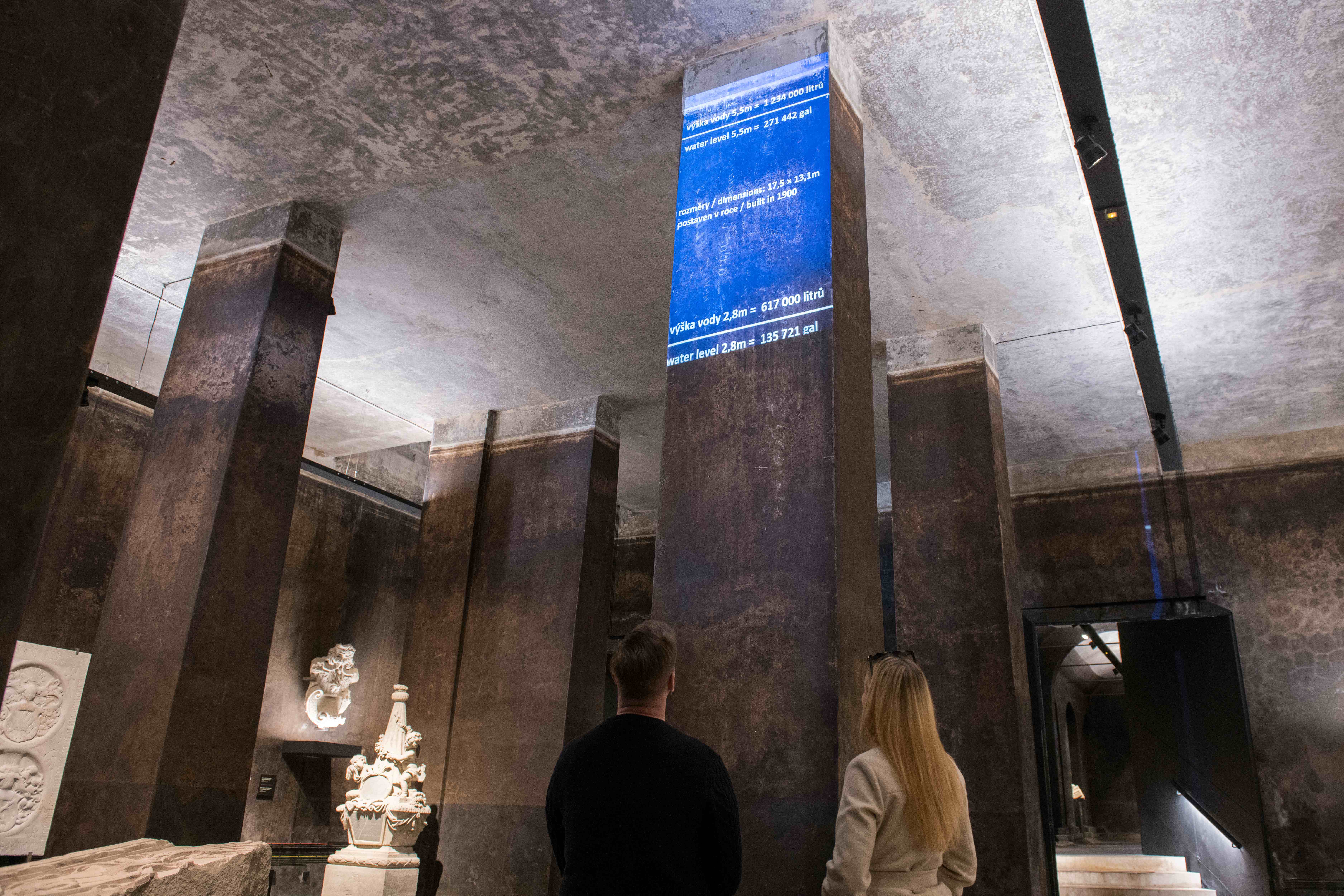 V mimořádně působivém prostoru obou nádrží vám teď představí cennou sbírku kamenických a kamenosochařských artefaktů – tedy starobylých soch, pomníků, náhrobků ze zrušených brněnských hřbitovů a kamenných ozdob ze zaniklých brněnských staveb. Některé z těchto artefaktů byly vystavené od roku 1908 do 80. let v Křížové chodbě Nové radnice, kde lapidárium Muzea města Brna původně sídlilo a kde několik předmětů zůstalo dodnes. Muzeum zatím mělo jen velmi malý prostor, kde kamenné artefakty vystavit, většina z nich proto byla uložena v depozitáři mimo zraky veřejnosti. V opravených vodojemech má teď muzeum důstojný prostor, kde vám nádherné kamenné předměty představí.