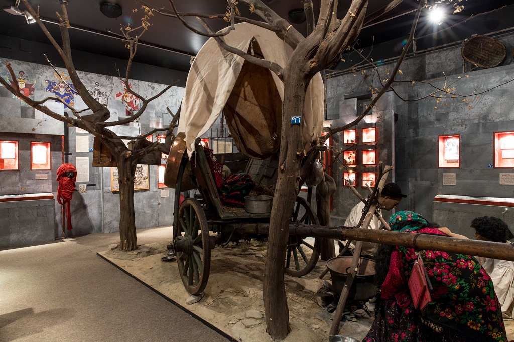 Jak již název expozice „Příběh Romů“ napovídá, věnuje se kompletní historii Romů od jejich předků ve starověké Indii, přes příchod Romů do Evropy v 11. století, až po události druhé světové války a současnost. V expozici si prohlédnete originální sbírkové exponáty i věrné repliky, které doplňují působivé audiovizuální prvky a dioramata. Expozice je vhodná pro jednotlivce, rodiny i zájmové skupiny.