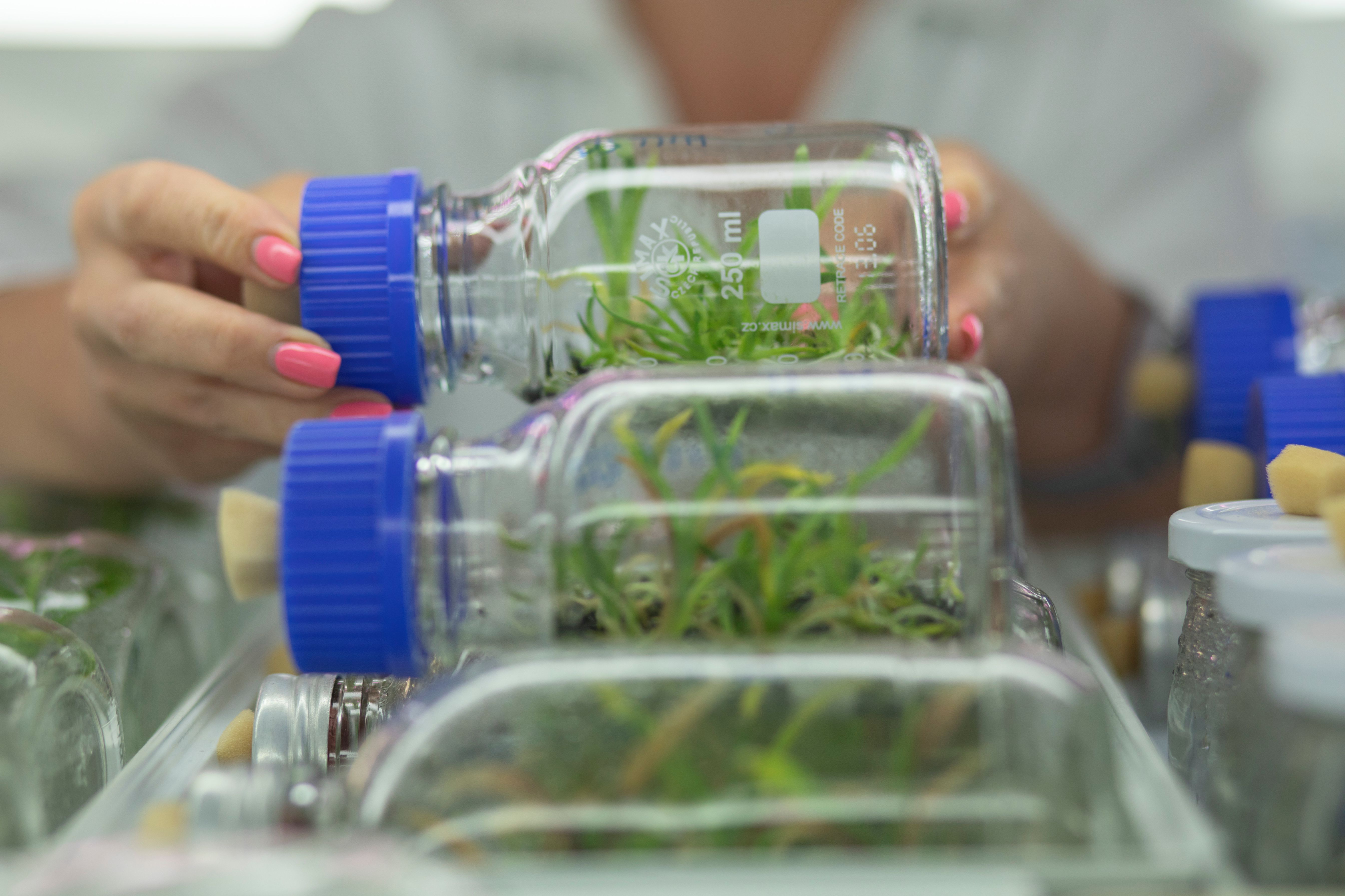 Botanická zahrada hl. m. Prahy má vlastní laboratoř, která se zabývá množením vzácných rostlin, především orchidejí a kapradin. Rostliny se vypěstují ze semen na sterilních živných médiích metodou in vitro (uvnitř sterilní skleněné nádoby). Takto se zde věnují 160 druhům orchidejí a více než 120 druhům kapradin, z nichž je 24 druhů zapsáno v celosvětovém červeném seznamu jako ohrožené. V rámci záchrany rodu Paphiopedilum (střevíčníkovec), který je zahrnutý v příloze 1 mezinárodní úmluvy CITES, probíhá spolupráce i s dalšími botanickými zahradami v Evropě. Naplňuje se tak celosvětový program záchrany genofondu ohrožených druhů rostlin.