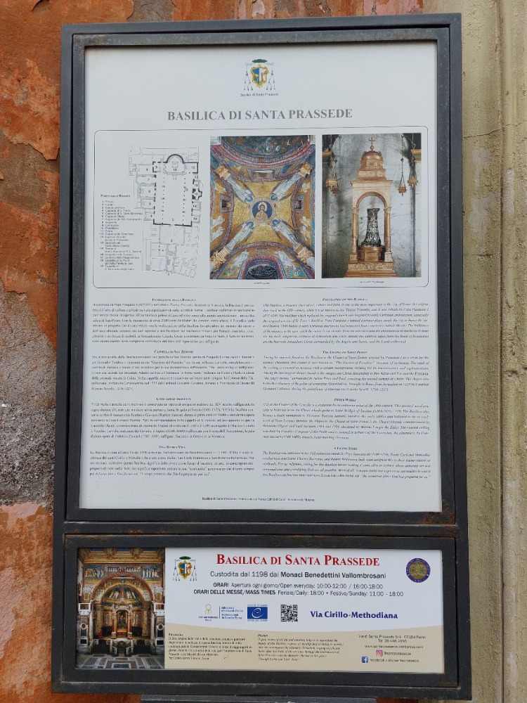 Protože patří Řím pro přímou spojitost s životy věrozvěstů mezi zásadní místa Cyrilometodějské stezky, intenzivně jednáme o vzniku členství ve sdružení s Metropolitním městem Řím. Místostarosta Piereluigi Sanna byl na návštěvě regionu a jádra Cyrilometodějské stezky v červenci loňského roku. Již tehdy projevil zájem na společném rozvoji a propagaci Cyrilometodějské stezky certifikované v r. 2021 Radou Evropy. Velká očekávání se vztahují vzhledem k blížícímu se jubilejnímu roku 2025. Bazilika sv. Praxedy (Basilica di Santa Prassede) je otevřena denně a denně v 18. hodin jsou zde slouženy mše sv. Výzdoba baziliky sv. Praxedy z 9. století je jedním z vrcholných projevů umění tohoto období. Pamětní deska na vnější zdi kostela nám dočasný domov našich kulturních předků stále připomíná.