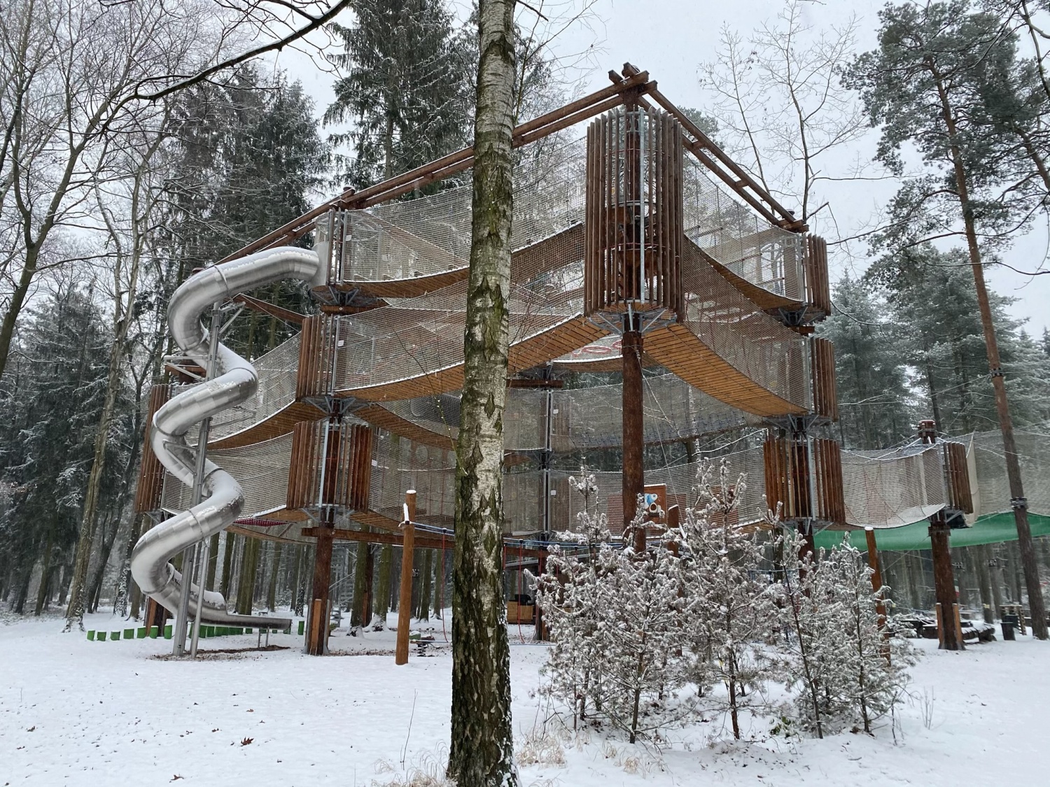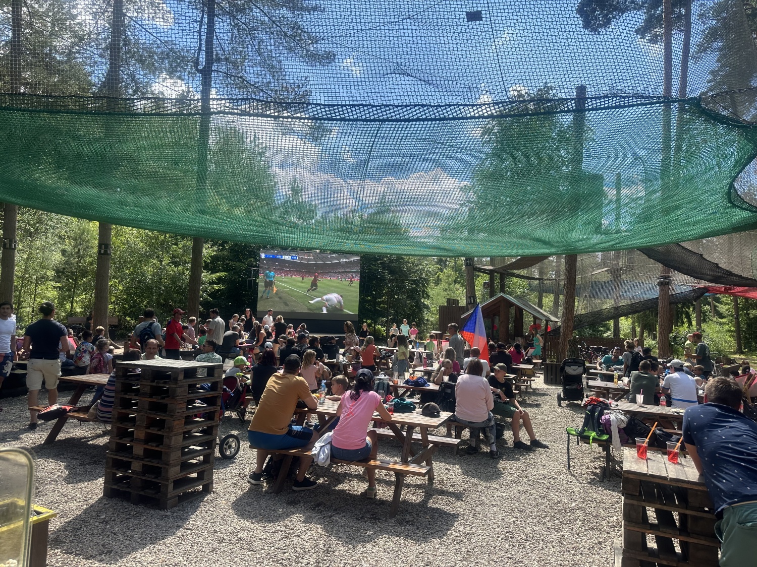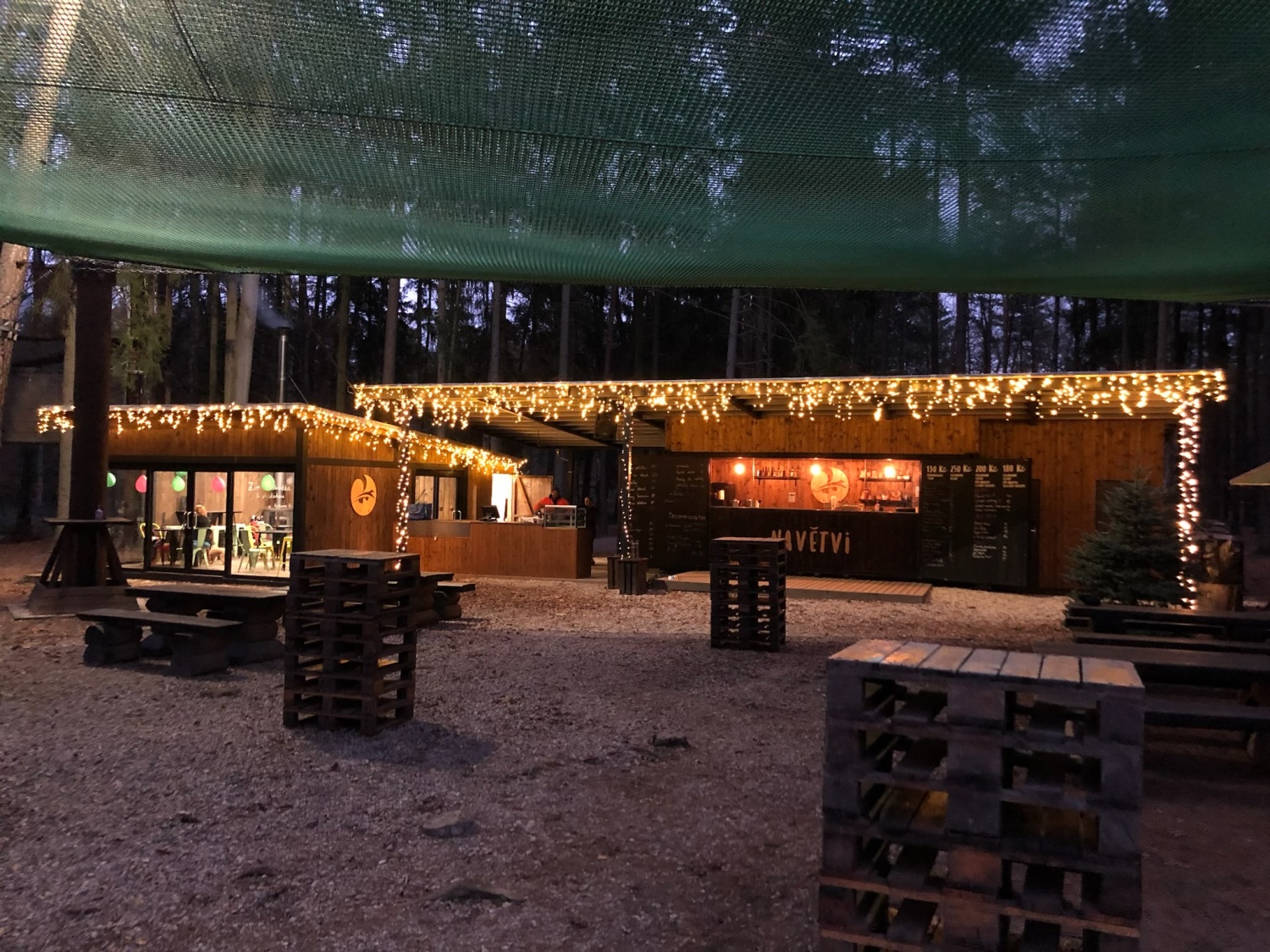 Lanové centrum je skvělým místem pro zábavu a odpočinek. Užijete si čas strávený v přírodě a kombinaci fyzické aktivity s relaxací na čerstvém vzduchu. Park Na větvi tvoří unikátní soustava tří síťových hřišť zavěšených v korunách stromů propojených s 3D bludištěm, které je složeno ze síťových překážkových drah rozprostřených ve třech patrech nad sebou. Síťové bludiště v korunách stromů obsahuje mnoho zábavných prvků, které otestují vaše motorické dovednosti. Jednotlivé herní plochy jsou propojeny visutými lávkami. Celá atrakce vrcholí sjezdem unikátním tobogánem z výšky necelých 10 m. Pohybová atrakce je natolik bezpečná, že na rozdíl od klasických lanových center nevyžaduje žádné osobní lanové jištění. Jedná se o krásné odpočinkové místo v lese, kde je příjemný stín. Součástí areálu je plně vybavený stánek s občerstvením, ve kterém se mohou občerstvit malí dobrodruzi i čekající doprovod. Děti tedy můžete vypustit na atrakce do výšky a vy si můžete v klidu posedět přímo pod atrakcí u dobré kávy. Nabízí se zde také regionální speciality od místních dodavatelů a o víkendech se před stánkem grilují sezónní dobroty. V okolí naleznete lesní stezku se siluety zvířat a ohništěm.