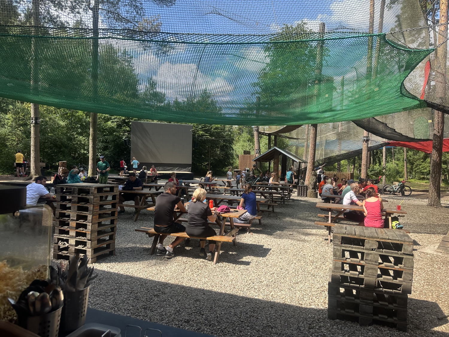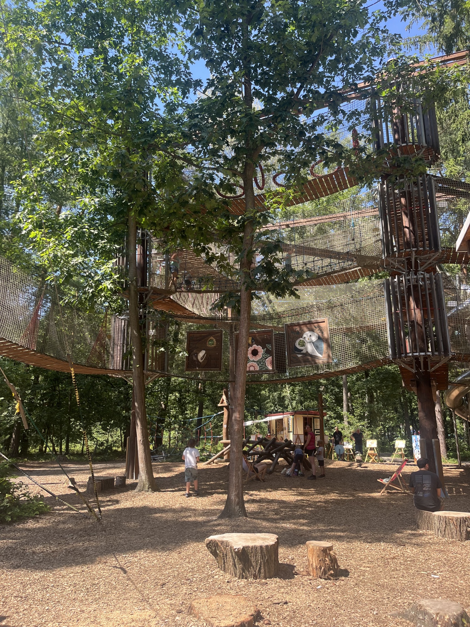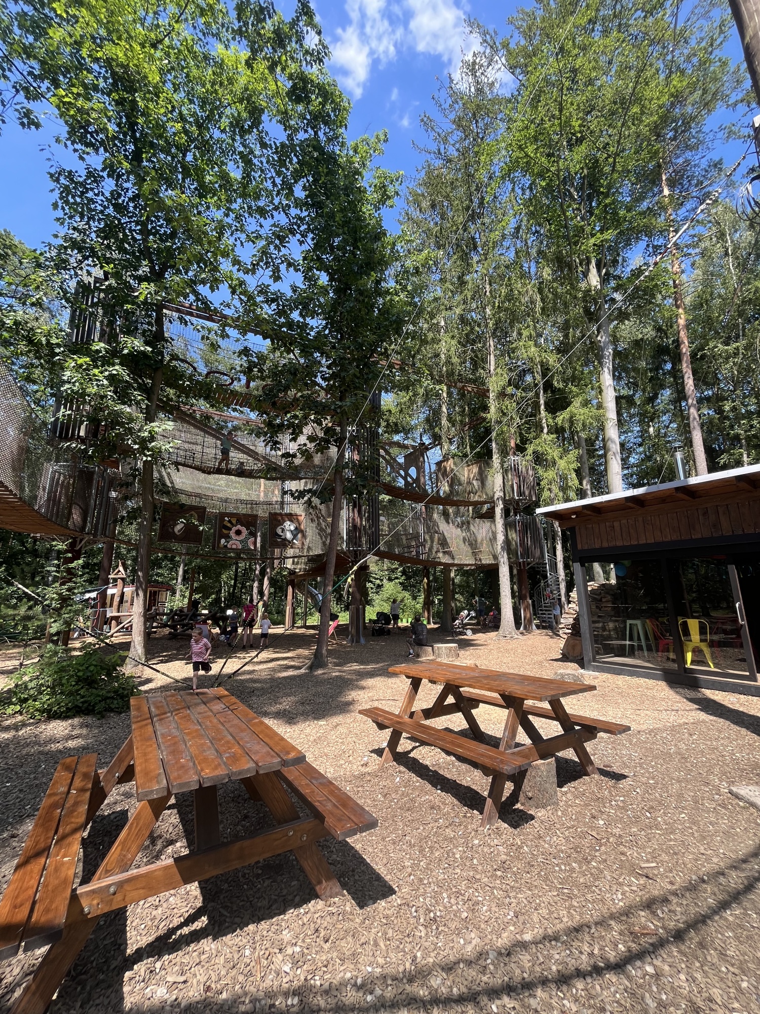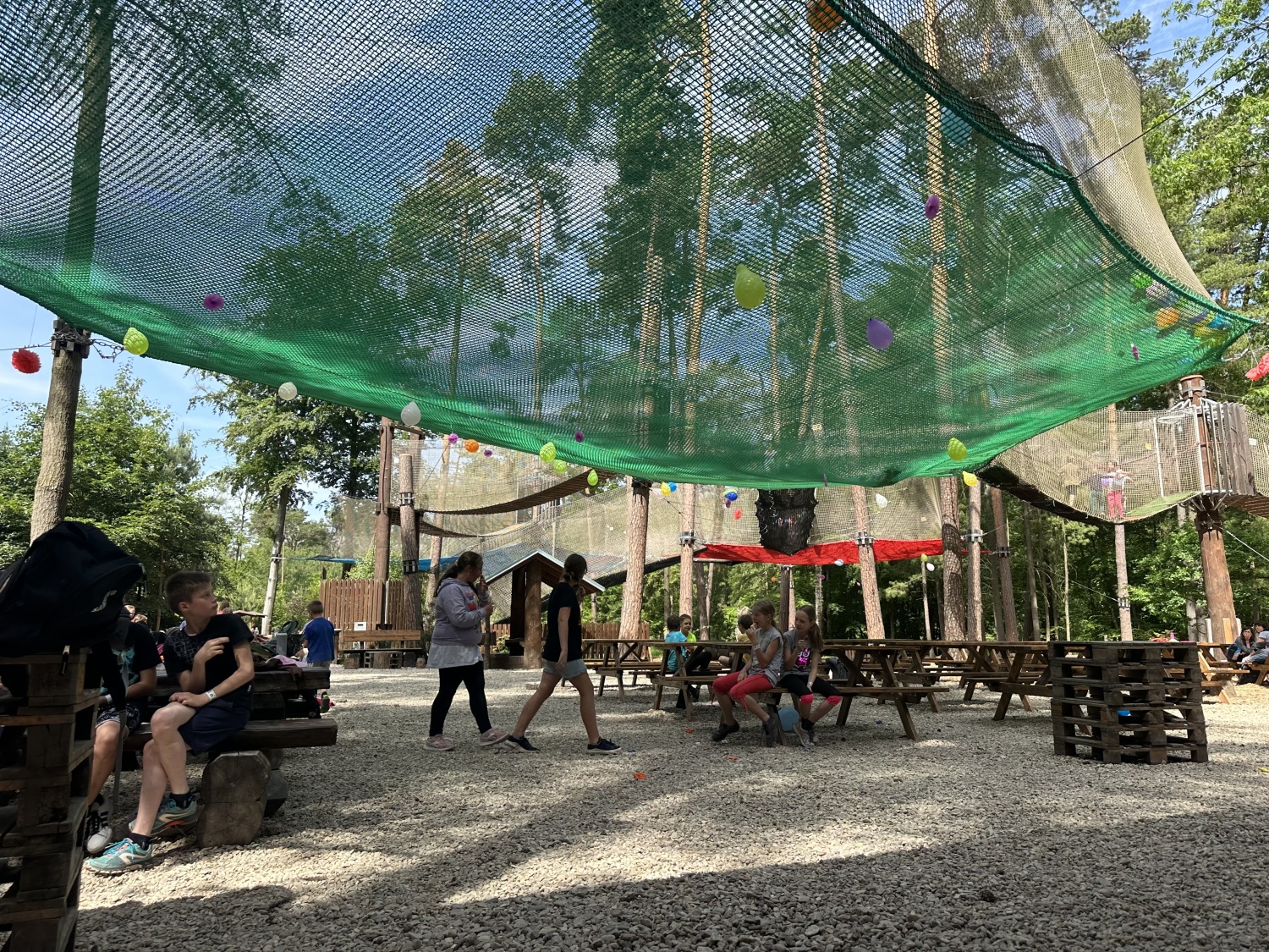 Lanové centrum je skvělým místem pro zábavu a odpočinek. Užijete si čas strávený v přírodě a kombinaci fyzické aktivity s relaxací na čerstvém vzduchu. Park Na větvi tvoří unikátní soustava tří síťových hřišť zavěšených v korunách stromů propojených s 3D bludištěm, které je složeno ze síťových překážkových drah rozprostřených ve třech patrech nad sebou. Síťové bludiště v korunách stromů obsahuje mnoho zábavných prvků, které otestují vaše motorické dovednosti. Jednotlivé herní plochy jsou propojeny visutými lávkami. Celá atrakce vrcholí sjezdem unikátním tobogánem z výšky necelých 10 m. Pohybová atrakce je natolik bezpečná, že na rozdíl od klasických lanových center nevyžaduje žádné osobní lanové jištění. Jedná se o krásné odpočinkové místo v lese, kde je příjemný stín. Součástí areálu je plně vybavený stánek s občerstvením, ve kterém se mohou občerstvit malí dobrodruzi i čekající doprovod. Děti tedy můžete vypustit na atrakce do výšky a vy si můžete v klidu posedět přímo pod atrakcí u dobré kávy. Nabízí se zde také regionální speciality od místních dodavatelů a o víkendech se před stánkem grilují sezónní dobroty. V okolí naleznete lesní stezku se siluety zvířat a ohništěm.