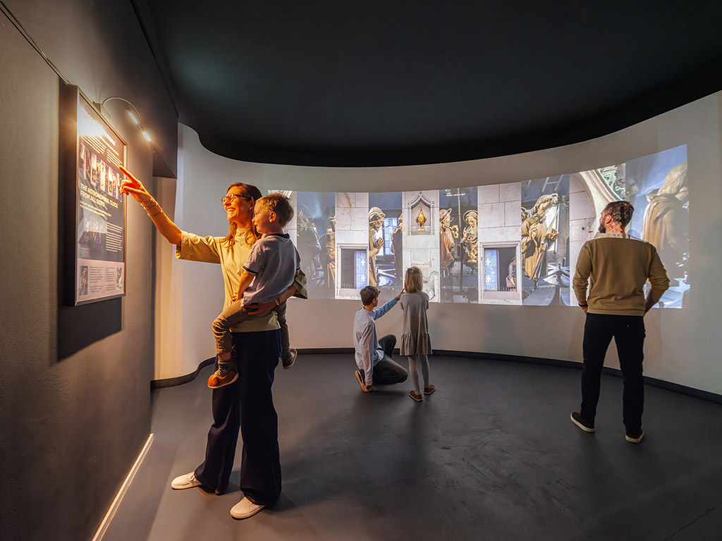 Expozice je umístěna v patrech domu s přímým výhledem na Staroměstské náměstí a radnici s orlojem. Z jednoho místa tak můžete sledovat jak samotnou dominantu náměstí, tak vizuální projekce, které pracují s pražskými věžemi, mosty, náměstími a dalšími známými místy. Prostor působí spíše jako živá scéna než klasická muzejní expozice.