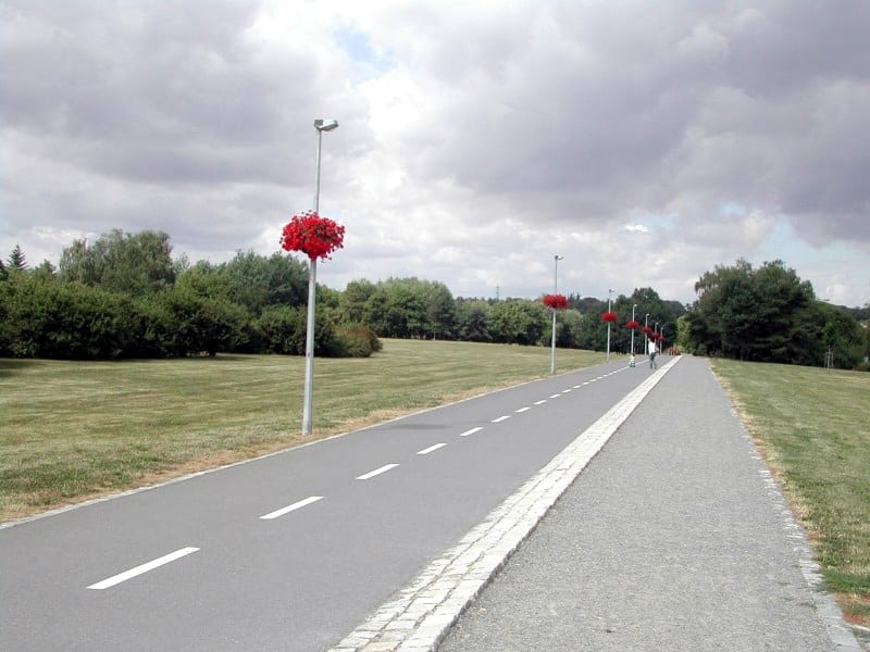 Areál byl naplánován jako uzavřený okruh oddělený travnatým pásem, stromy a další zelení. Máte zde tedy dostatek prostoru pro jízdu, aniž byste se museli vracet po stejné cestě. Celý areál pokrývá velké množství zeleně, přičemž udržované louky s „anglickým“ trávníkem nabízejí velmi dobré podmínky i pro míčové hry případně pouštění leteckých modelů. Velmi často tu však fouká vítr, s čímž je třeba počítat.