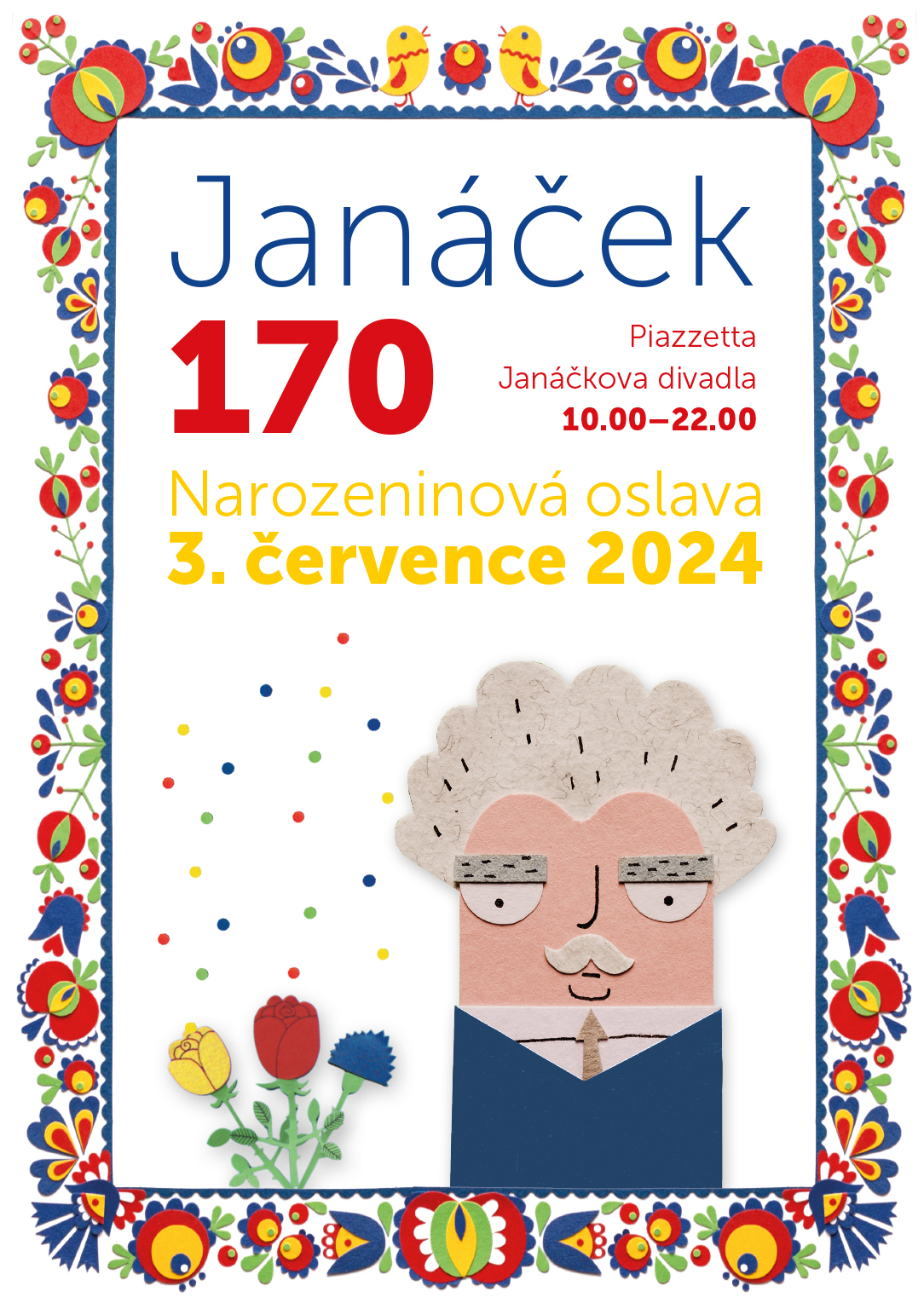 Náš slavný skladatel má už 170 let, tak ta narozeninová party bude stát za to. Čeká vás zábavný celodenní program, koncerty, nahlédnutí do tajů opery Její pastorkyňa i s ukázkami, pohodlná lehátka, koktejly a Janáčkův foto koutek. Těšte se už 3. července 2024 na piazzettě před Janáčkovým divadlem.
