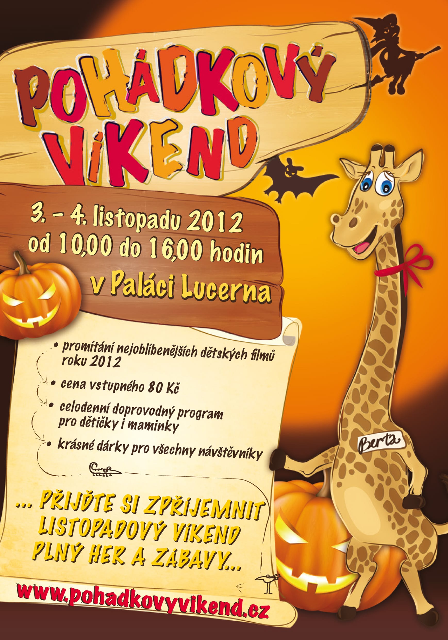 O víkendu 3. – 4. listopadu 2012 se v pražském Paláci Lucerna uskuteční Pohádkový víkend plný filmů, zábavy a her.
