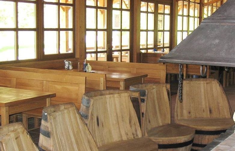 Z příjemného interiéru provoněného dřevem ze starých modřínových a dubových sudů, ve kterých zrála zlatá slivovice a další věhlasné destiláty, se Vám nebude chtít odcházet.