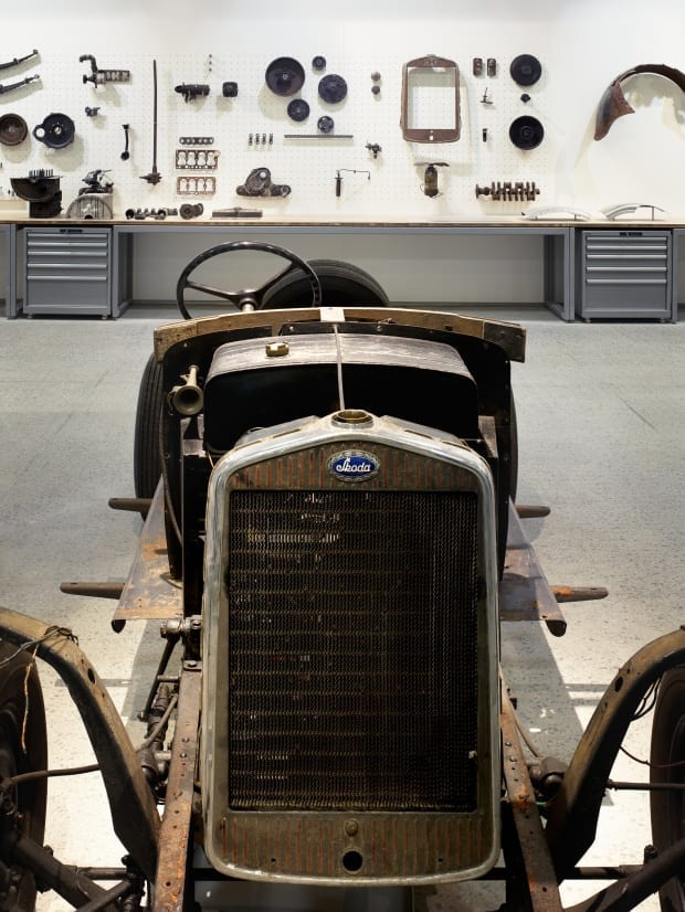 V tematické oblasti Tradice jsou přiblíženy hodnoty značky Škoda – Hrdost, Každodennost a Výzvy symbolizované třemi páry vozů. Každý pár doplňuje vitrína, jejíž exponáty vypráví vzrušující, dokumentaristické, bizarní a také velmi osobní příběhy. Bustami obou zakladatelů firmy, pánů Laurina a Klementa začíná tematická oblast nazvaná Evoluce. Dominuje jí chronologická řada po sobě jdoucích milníků automobilového vývoje s paralelně probíhající galerií technické sbírky, kde jsou prezentovány důležité body technologického vývoje. Na druhé straně místnosti skýtá čtyřpodlažní regál vozů působivý celkový obraz, který se skládá z dvaceti variabilně uspořádaných exponátů.