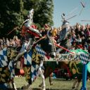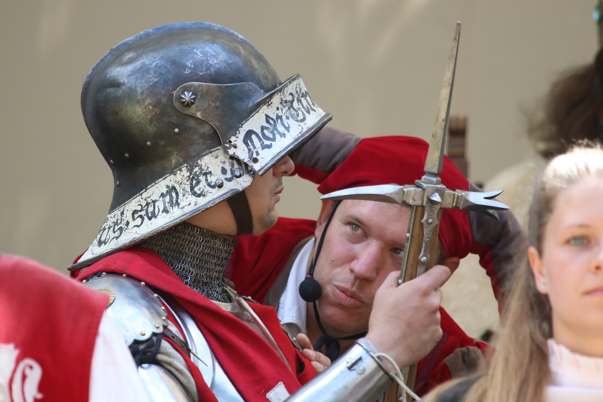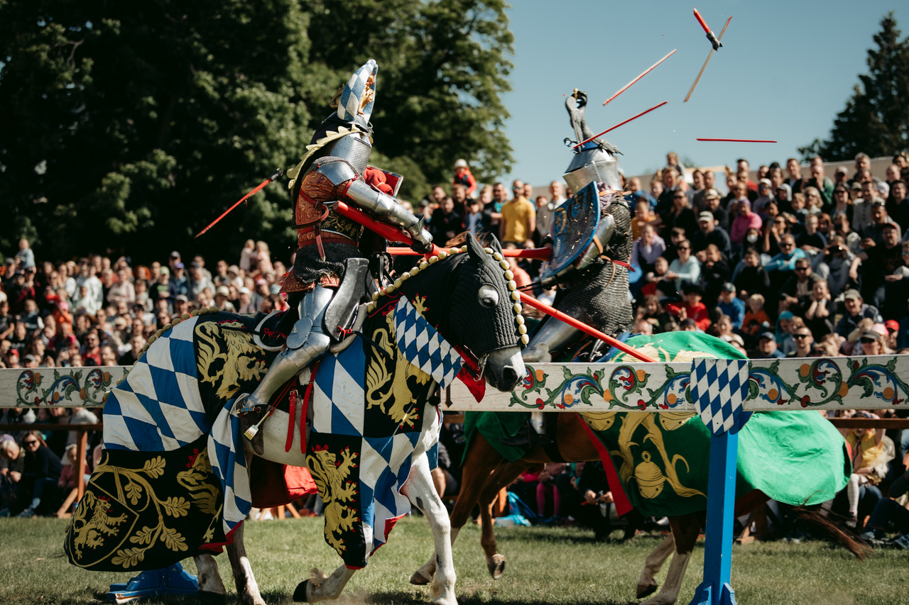 14:30 Rytířský turnaj na koních – po přivítání královny Johanky a krále Jiříka ve městě a předání řádu paní rožmitálské následuje velkolepý rytířský turnaj na koních v podání Agentury Hector