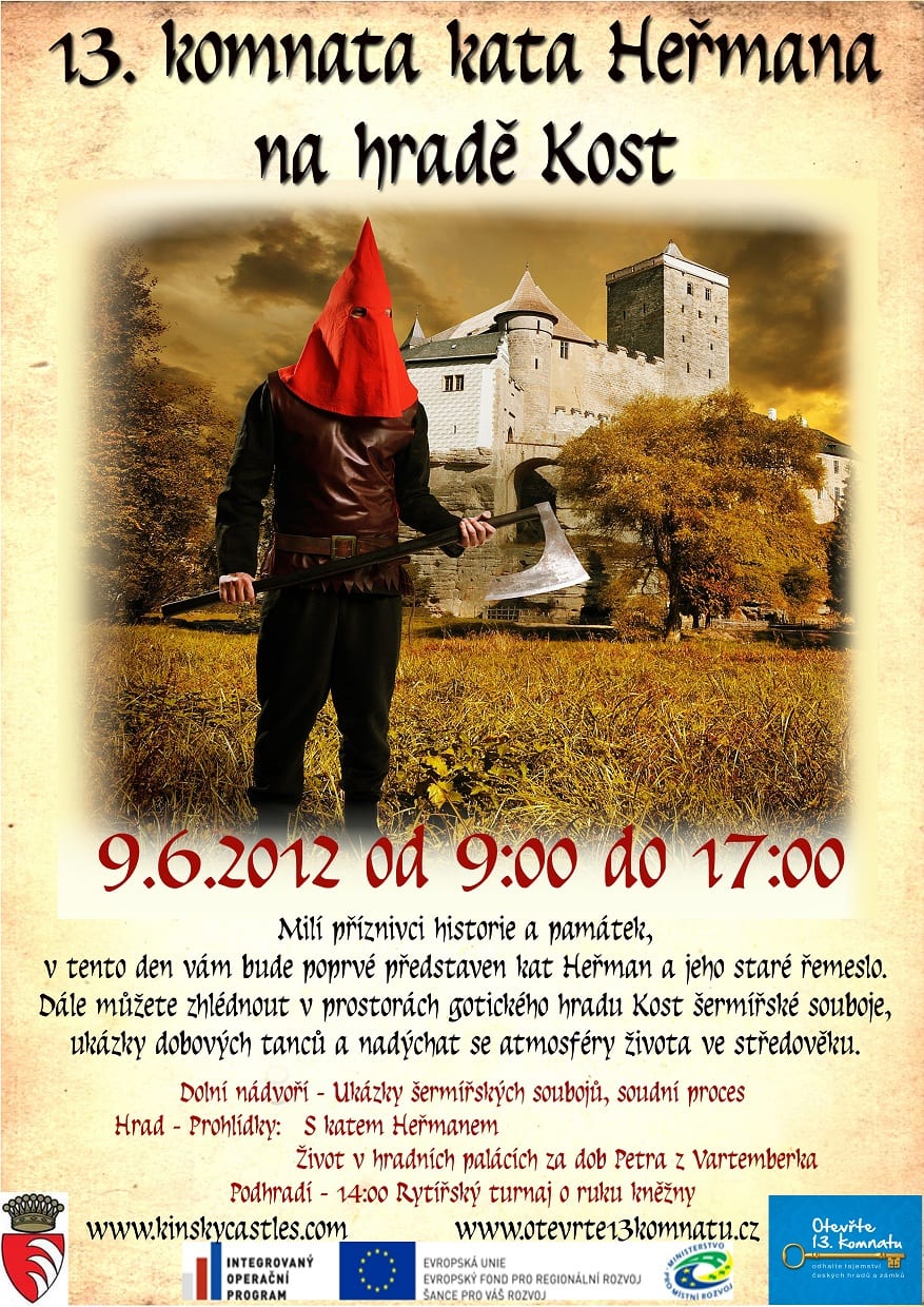 Nikdy prý nebyl dobyt. Mnozí zdatní válečníci ale tvrdí, že to nebylo proto, že by byl pevný jako kost, ale proto, že většina nepřátelských dobyvatelů ho v čase, kdy málokdo vlastnil mapu, zkrátka vůbec nenašla: Vypíná se totiž na nevysoké skále obklopené zalesněnými hvozdy. My však doufáme, že si k nám cestu najdete a přijdete třeba na slavnostní zahájení projektu 13. komnata s katem Heřmanem. A na co se můžete těšit?