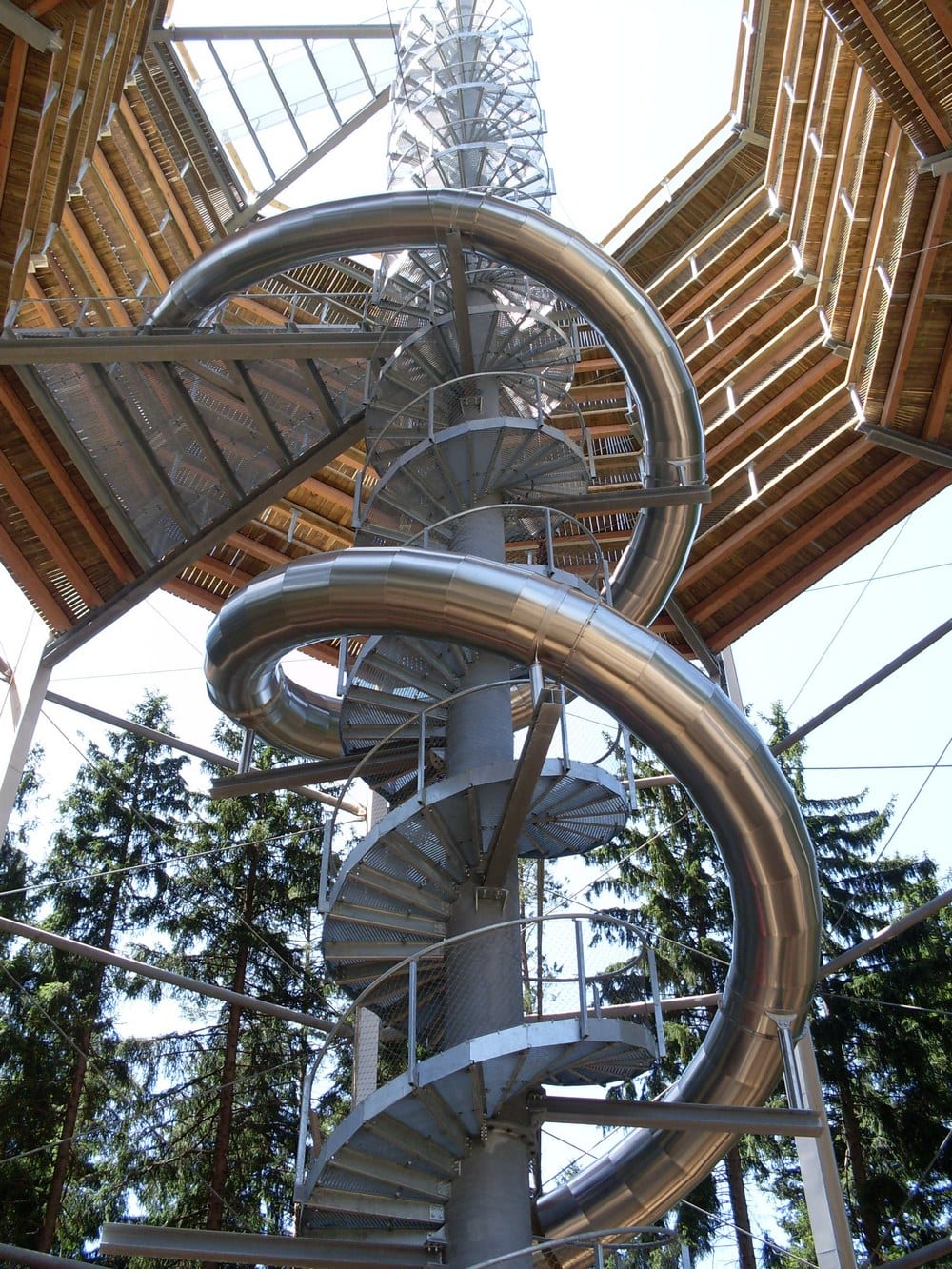 Za maximálního stoupání 2 – 6 % se návštěvníci dostanou až do 24 metrové výšky. Dobrodružnou a přesto bezpečnou cestu po lávce zajišťuje konstrukce z masivního dřeva a 75 dřevěných podpěrných sloupů. Dřevěné zábradlí a transparentní postranní síť jsou zárukou dokonalé bezpečnosti a zároveň výhledu. Stezka korunami stromů Lipno je zakončena 40 metrů vysokou vyhlídkovou věží. Návštěvníkům se naskytne výhled na vrcholky Alp, téměř celé Lipno a nádherné okolí Šumavy. Součástí projektu je nejdelší suchý tobogan v ČR, který měří 52 metrů.