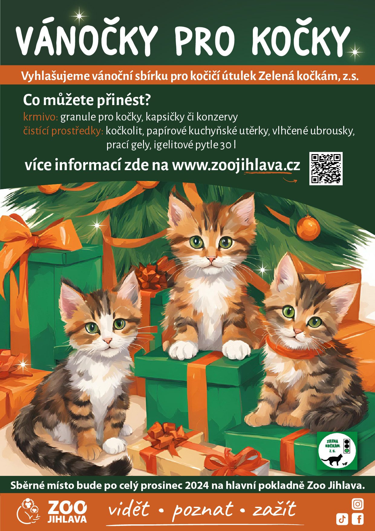 Zapojte se s námi do vánoční sbírky na podporu útulku Zelená kočkám, z. s., který se věnuje pomoci kočkám v nouzi. Tato organizace sdružuje lidi s hlubokým zájmem o zlepšení života opuštěných koček.