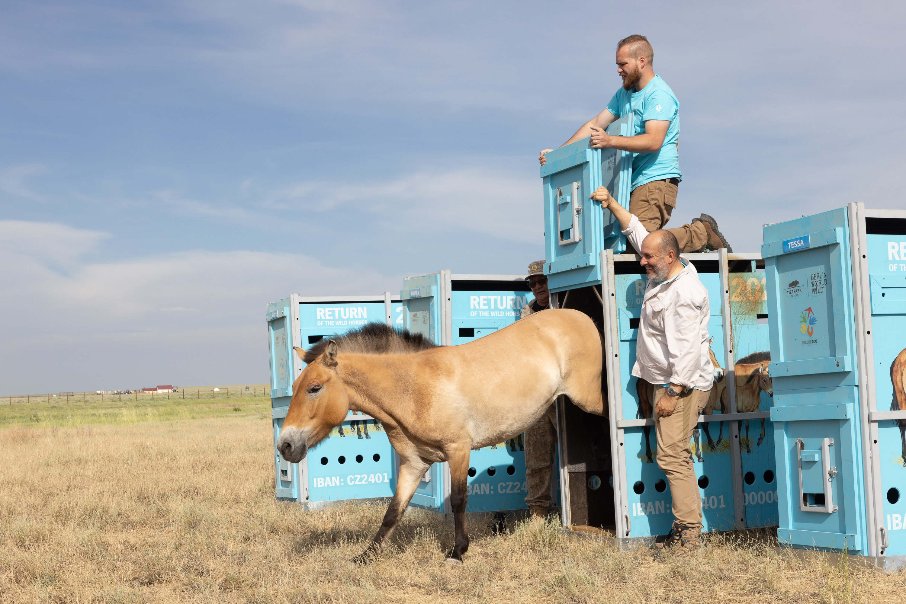 Do Altyn Dala, tedy do Zlaté stepi, dorazily dnes tři klisny narozené v Německu – statná pětiletá Tessa původem z Tierparku Berlín, stejně stará tmavonohá Wespe narozená v zoo ve Weilburgu a tříapůlletá světlohřívá Umbra pocházející z polopřírodní rezervace Aschaffenburg Schweinheim. Doplnila je nejmladší Sary, které budou za dva týdny teprve tři roky a která jako jediná pochází z Francie, ze ZooSafari de Thoiry. Všechny kandidátky se sešly v Tierparku Berlín v uplynulém půlroce – podobně jako tomu bylo u nás v Dolním Dobřejově, kde vede Zoo Praha chovnou stanici. Finální výběr jedinců vhodných pro transport především s ohledem na jejich zdravotní stav provedli odborníci ze Zoo Praha spolu s kolegy z Tierparku Berlín.