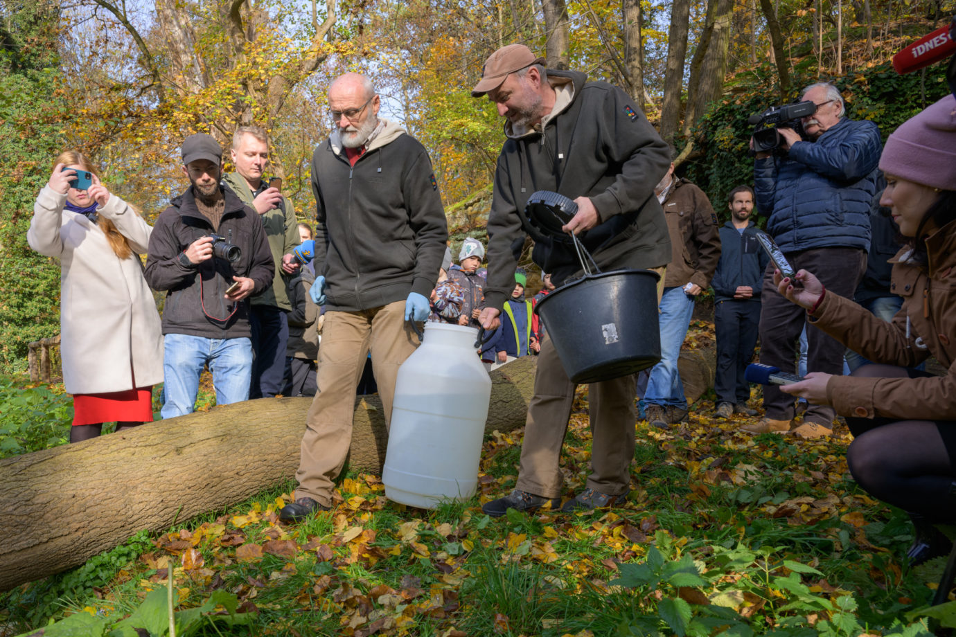 Přibližně stovka malých karasů obecných rozmnožených v Zoo Praha obývá ode dneška rybník U Kamenného stolu v pražské Vinoři. Vypustili je tam pracovníci Zoo Praha a fakticky tím zahájili dlouho chystanou reintrodukci téměř vyhynulého druhu do tuzemské přírody.