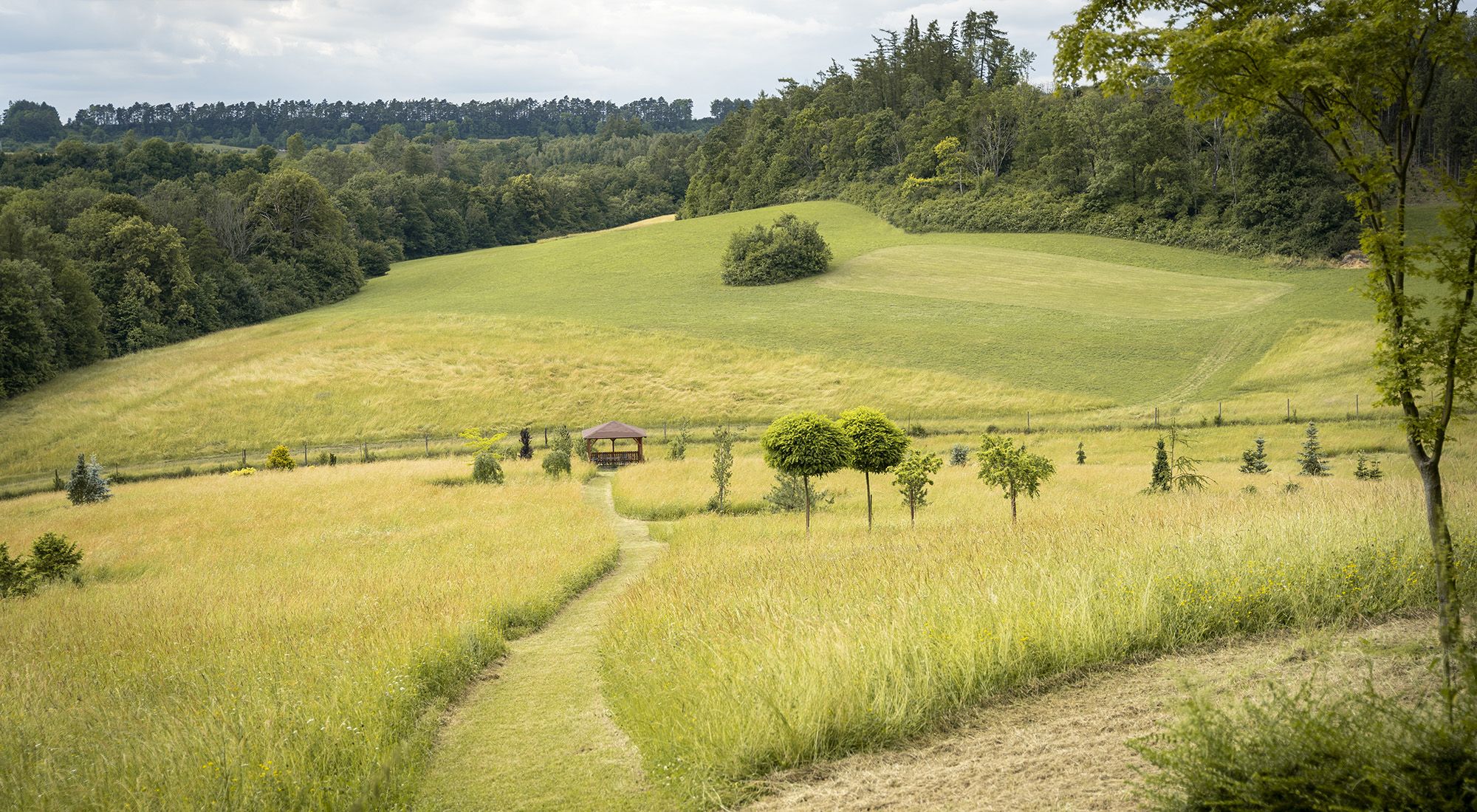 Rokokový zámek postavil v 18. století šlechtic Jean-Antoine Harbuval de Chamaré. Inspirován architekturou francouzských letních sídel je zámek nejčistší ukázkou rokoka v České republice. Dnes soukromý zámecký areál tvoří 20 hektarový ucelený komplex s romantickými zahradami, rozlehlým parkem a historickými hospodářskými budovami. Návštěvníkům nabízí odpočinek v zeleni proměňující se v ročních obdobích a historický vhled do estetiky na přelomu rokoka a klasicismu. Návštěvníkům je k dispozici kavárna s galerií a restaurace. Zámek můžete navštívit denně od května do konce září a v dubnu a říjnu je otevřeno o víkendech a svátcích. Vstup do zámeckého areálu je zpoplatněn.