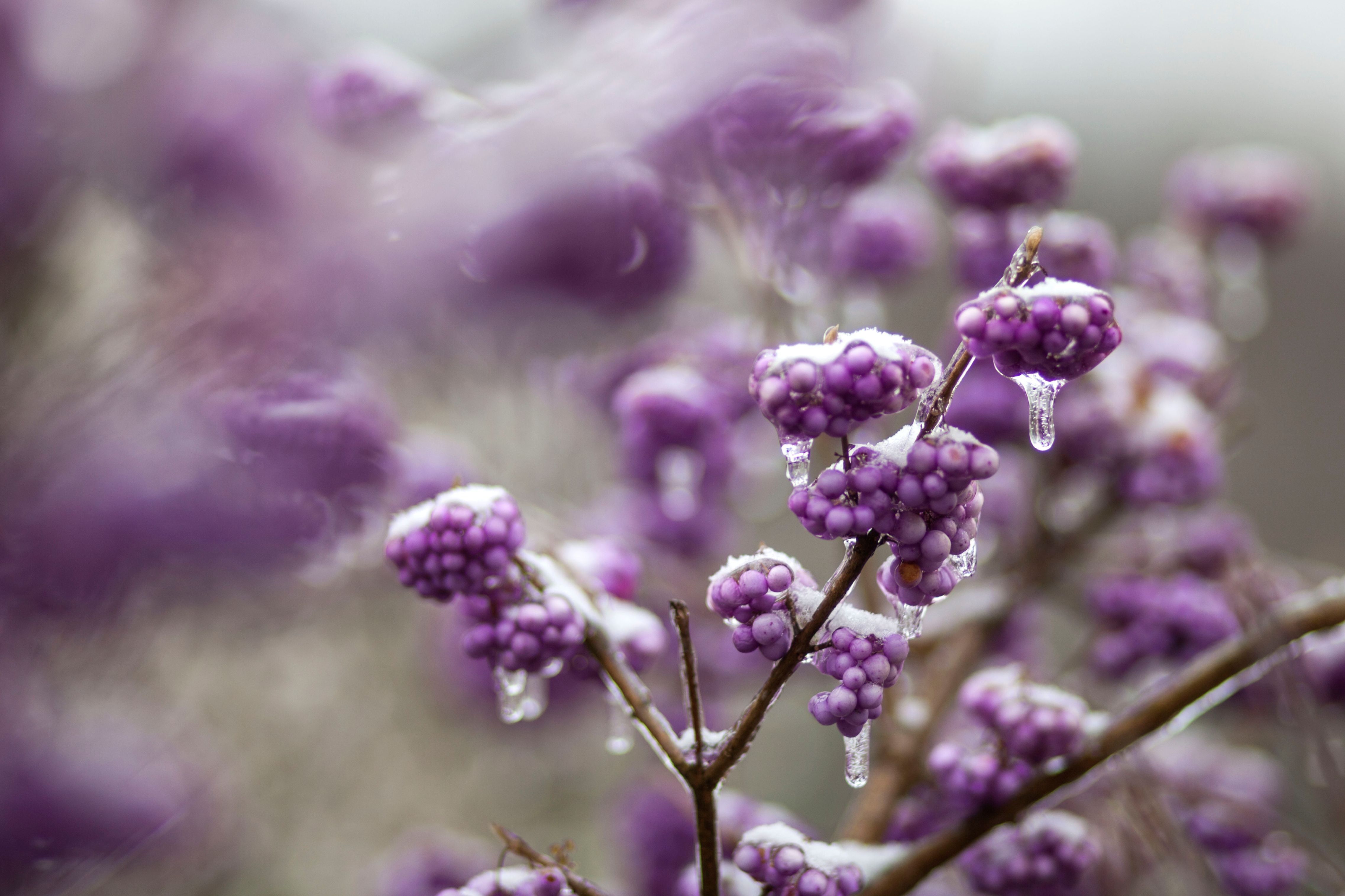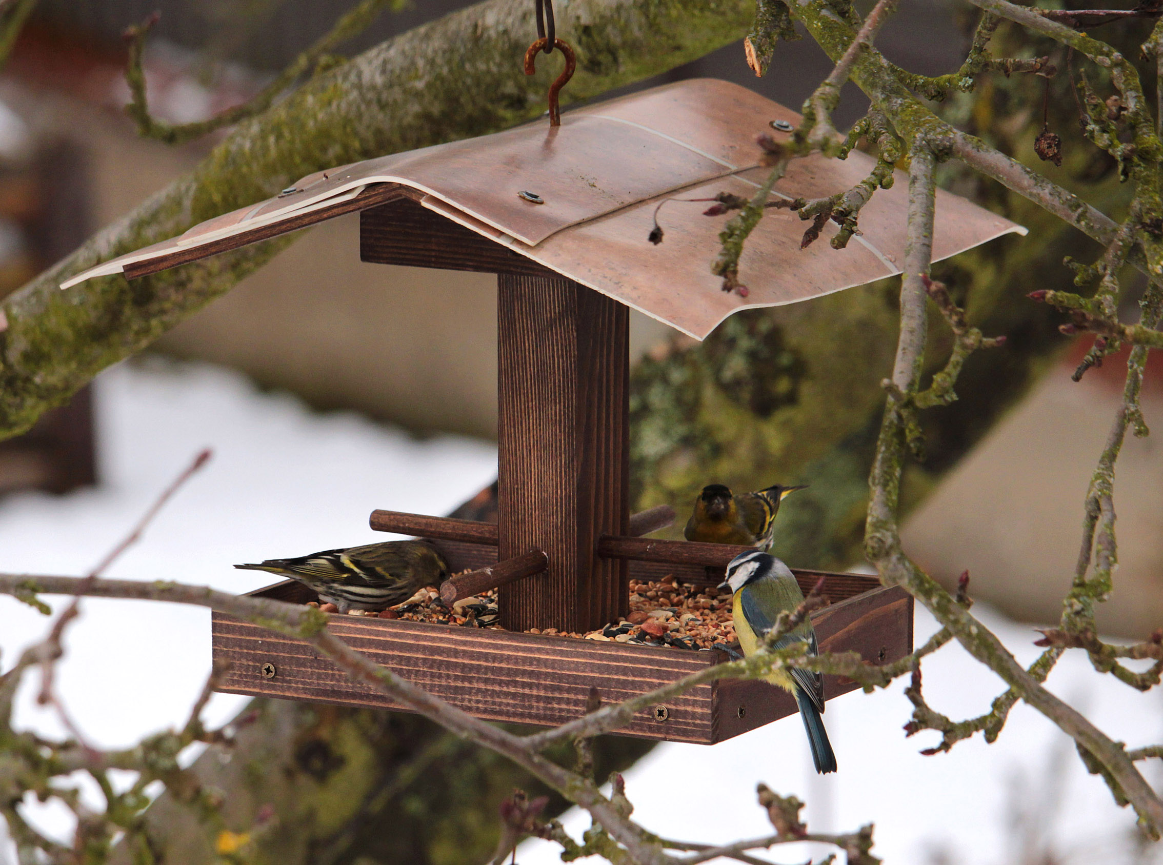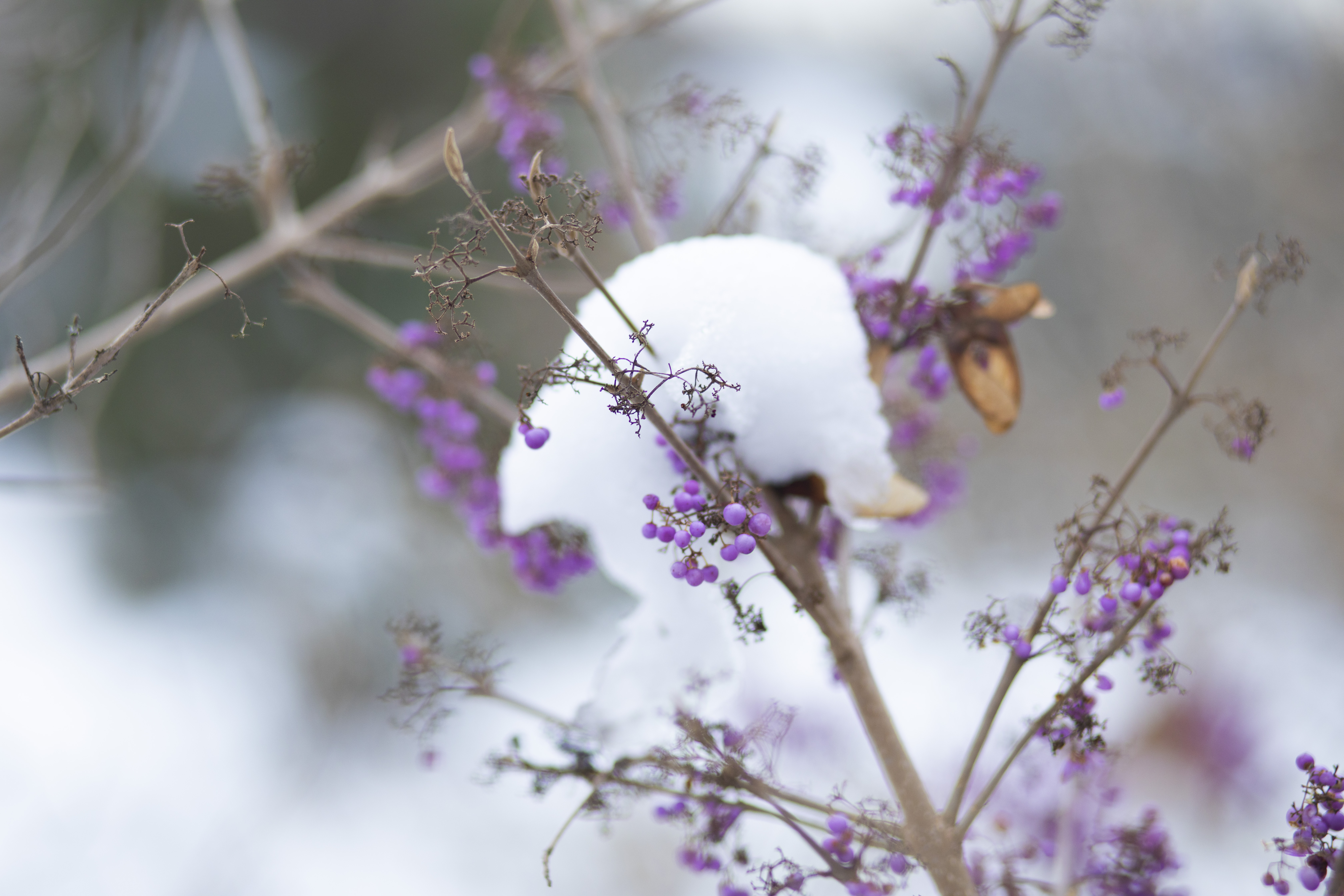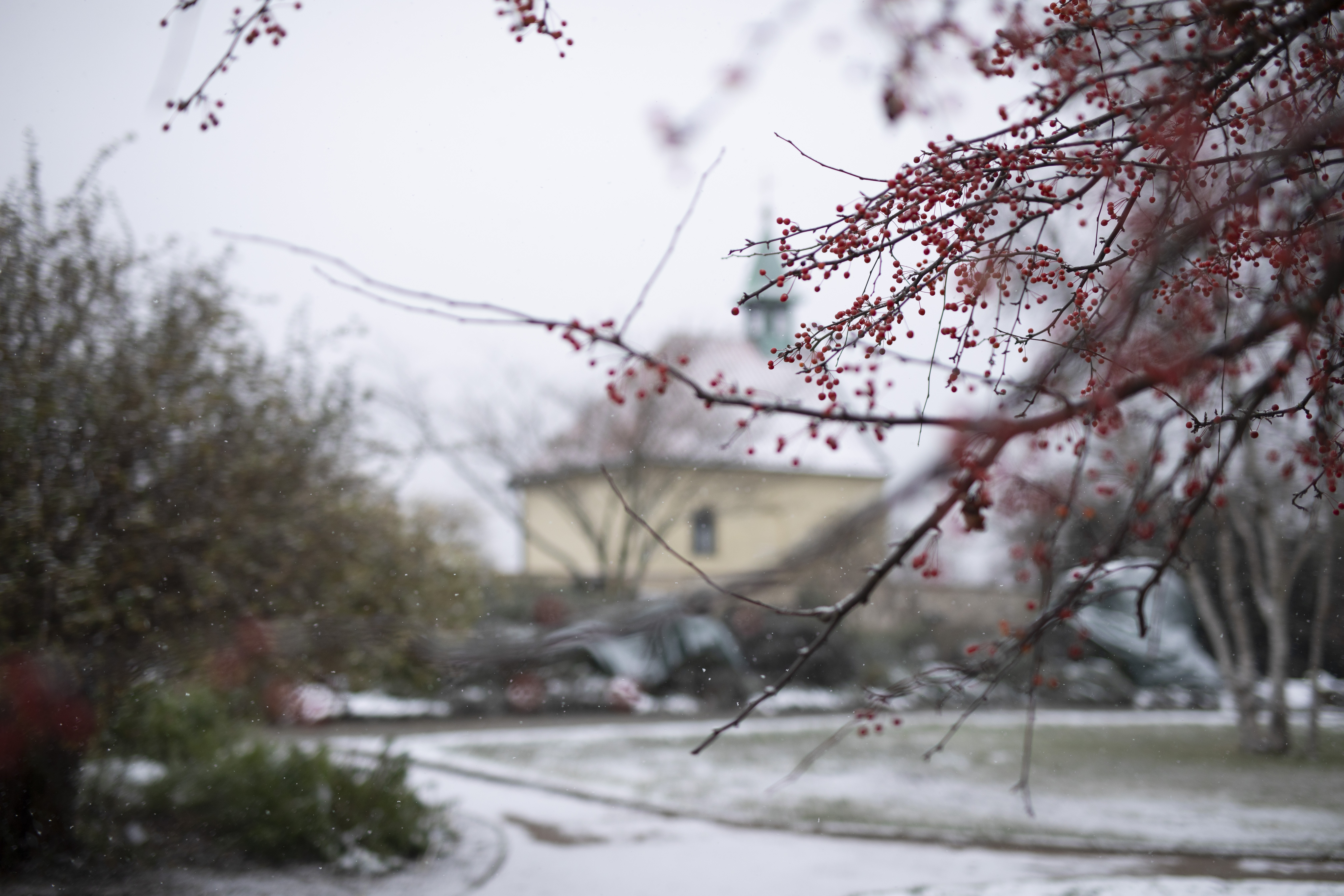 Hraje odstíny zelené jehličnanů a stálezelených stromů a keřů i nejrůznějšími barevnými akcenty. Keře cesmín, hlohyní a dřišťálů jsou obsypány plody v tónech červené, oranžové i žluté. Ty doplňují fialově zbarvené krásnoplodky. Překvapením pak mohou být květy některých dřevin, například vilínů, jasmínu nahokvětého a kaliny. Výjimkou ale nejsou ani stromy, v tomto období kvete například višeň chloupkatá nebo meruňka japonská. Zimní přehlídku flóry doplňují ptáci, kteří do zahrady přilétají za potravou, na krmítkách můžete kromě sýkor a kosů vidět i brhlíky, rovněž pěnkavy a jednotlivé červenky. Přilétá též sojka a na stromech posedávají kvíčaly.