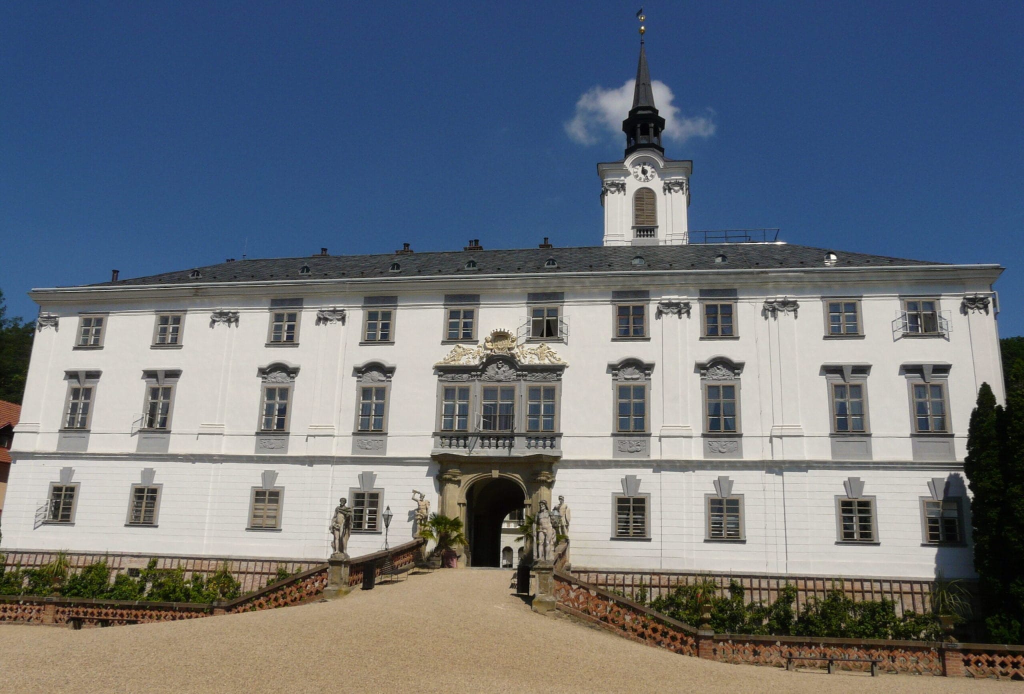 Okolní malebná pahorkatá krajina obydlena již v pravěku, první písemná zmínka o obci je z roku 1308. Za návštěvu stojí zdejší zámek z první poloviny 17. století. Expozici tvoří sbírky českého skla, soubory orientálních uměleckých předmětů, zbrojnice se zbraněmi, knihovna a sbírka ručně malovaných střeleckých terčů. Návštěvníci mohou projít přilehlé zahrady a oranžérii. Z dalších památek jmenujme kostel sv. Petra a Pavla a nedalekou volně přístupnou zříceninu hradu Rychvald.