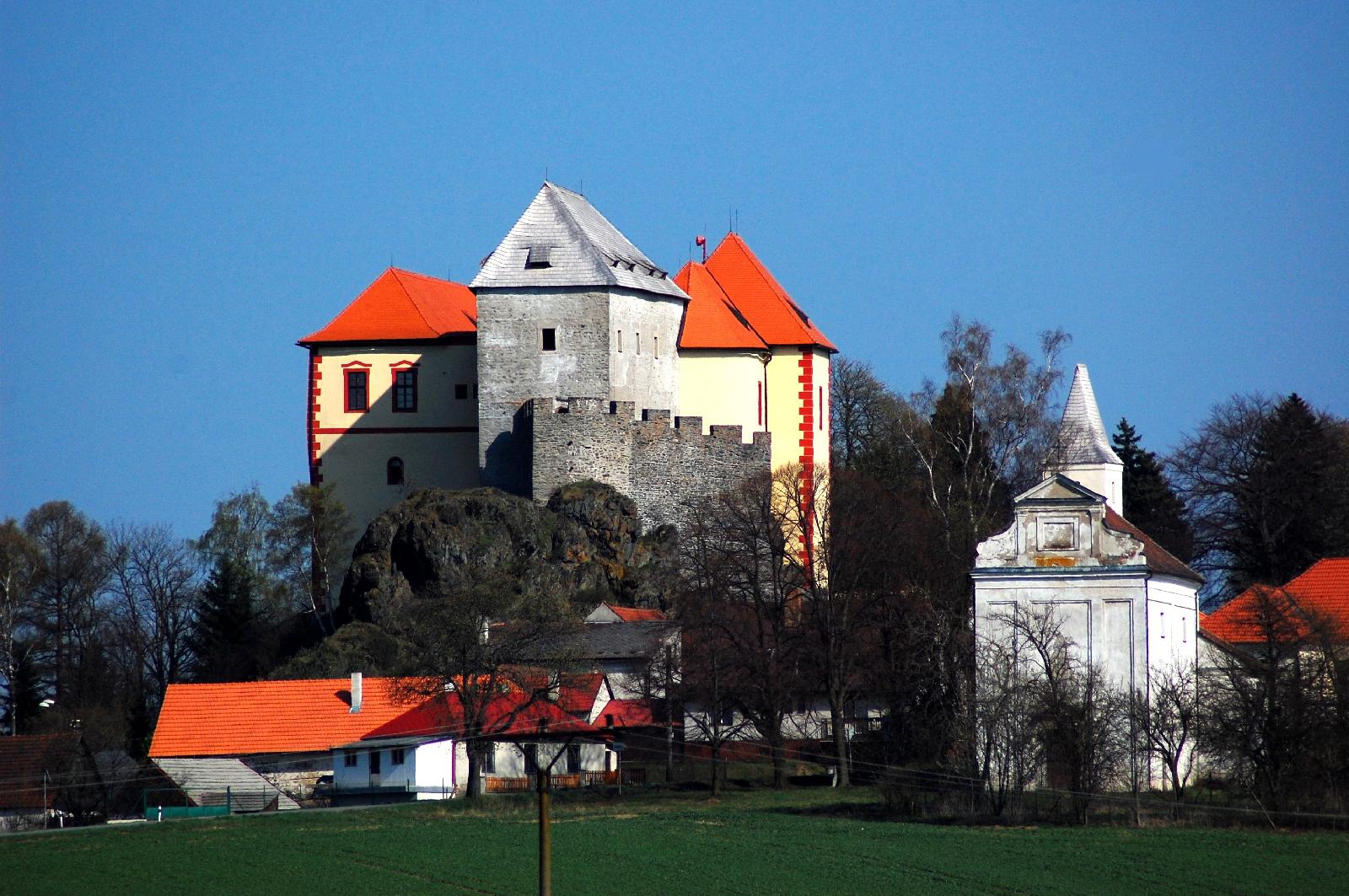 Obec se dělí na několik částí. Jedná se o Kámen, Nízkou Lhotu a Nový Dvůr. Zajímavostí obce je, že se v jejím středu nachází skalnatý vrch, na němž stojí stejnojmenný hrad. Součástí hradu je muzeum motocyklů. Na okraji obce se nachází území bývalého vojenského letiště Kámen. V obci je k vidění také socha svatého Jana Nepomuckého a barokní kostel Panny Marie Bolestné. Ten byl postaven v roce 1667 a původně sloužil jako hrobka starého českého rodu Malovců. V části obce Nový Dvůr se nachází stejnojmenný zámek.